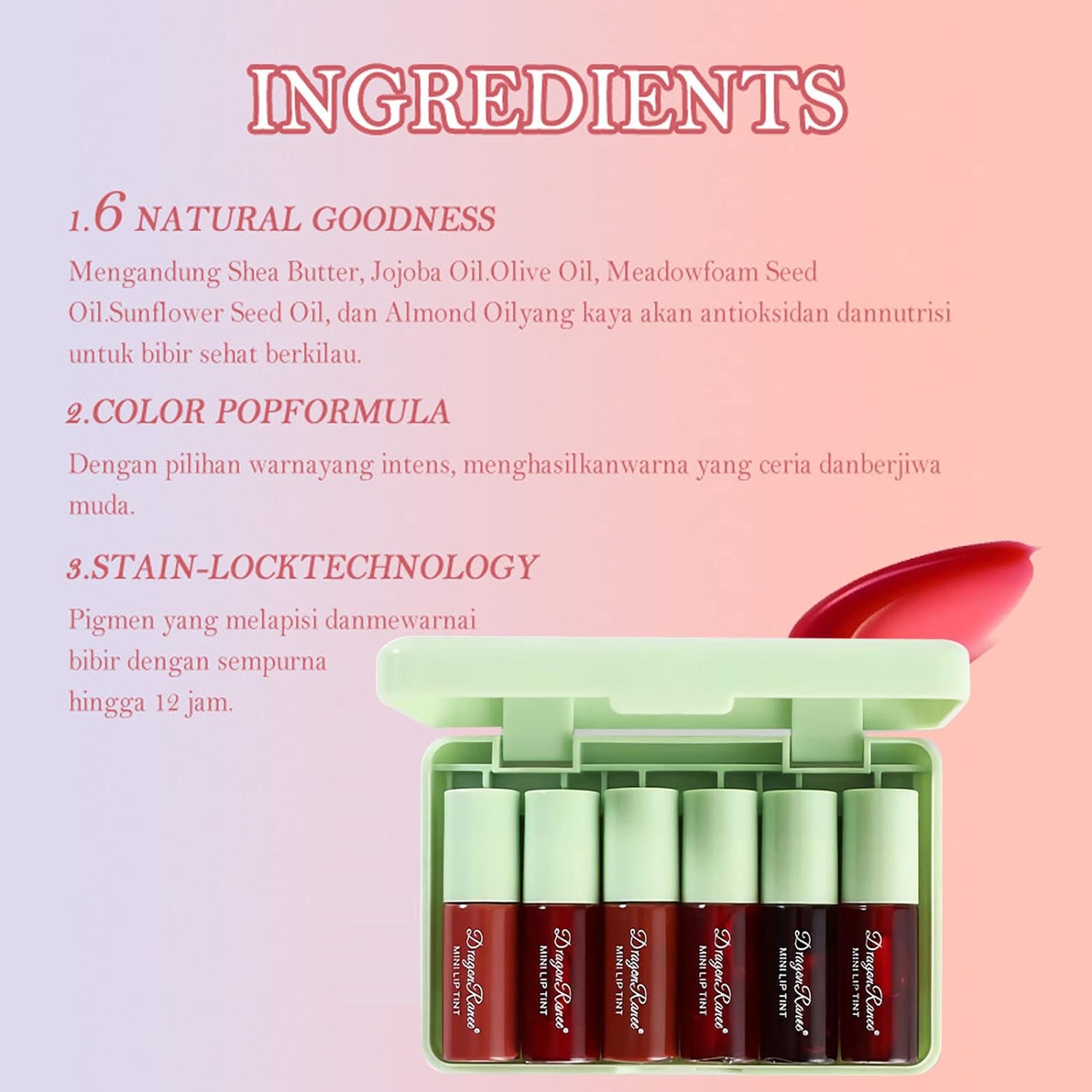 - 【Lip Tint Formulation】The lip tint stain is enriched with a moisturizing lip formula, paraben-free, cruelty-free, and available in 6 shades of mini liquid lip gloss.