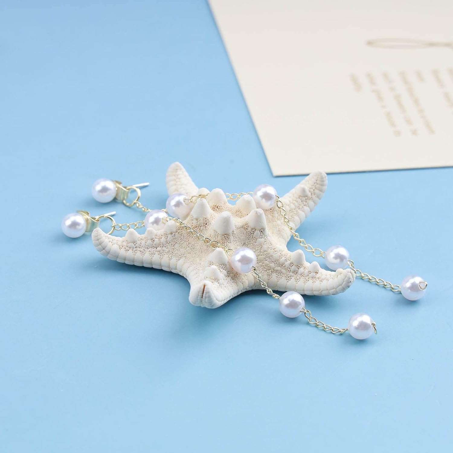 Boho Pearl Drop Earrings Long Pearl Tassel Earrings Gold Pearl Chain Earrings Vintage Pearl Stud Earrings Jewelry for Women