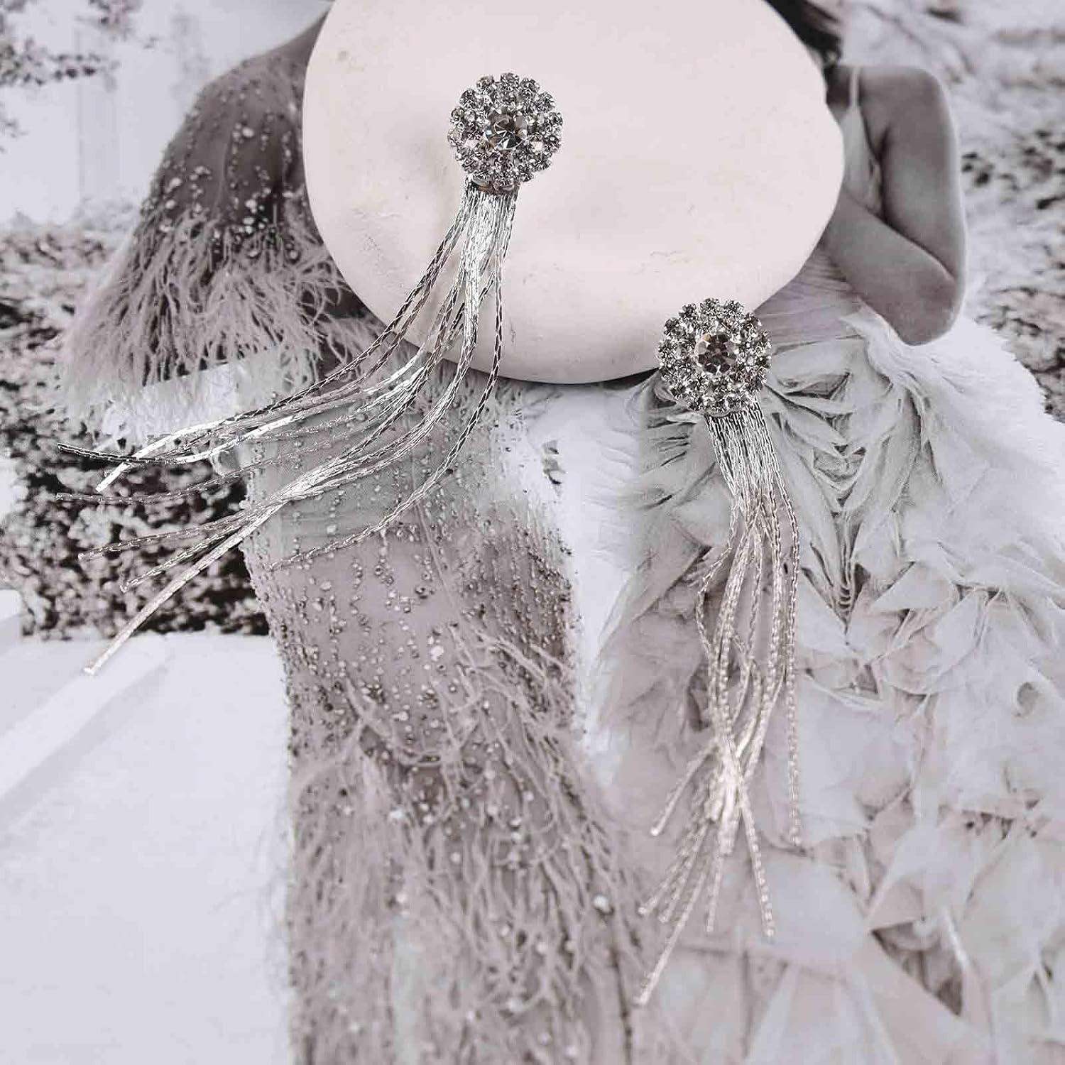 Vintage Crystal Chandelier Dangle Earrings Rhinestone Tassel Chain Earrings Wedding Chandelier Earrings Silver Full Cz Chain Earrings Jewelry for Women