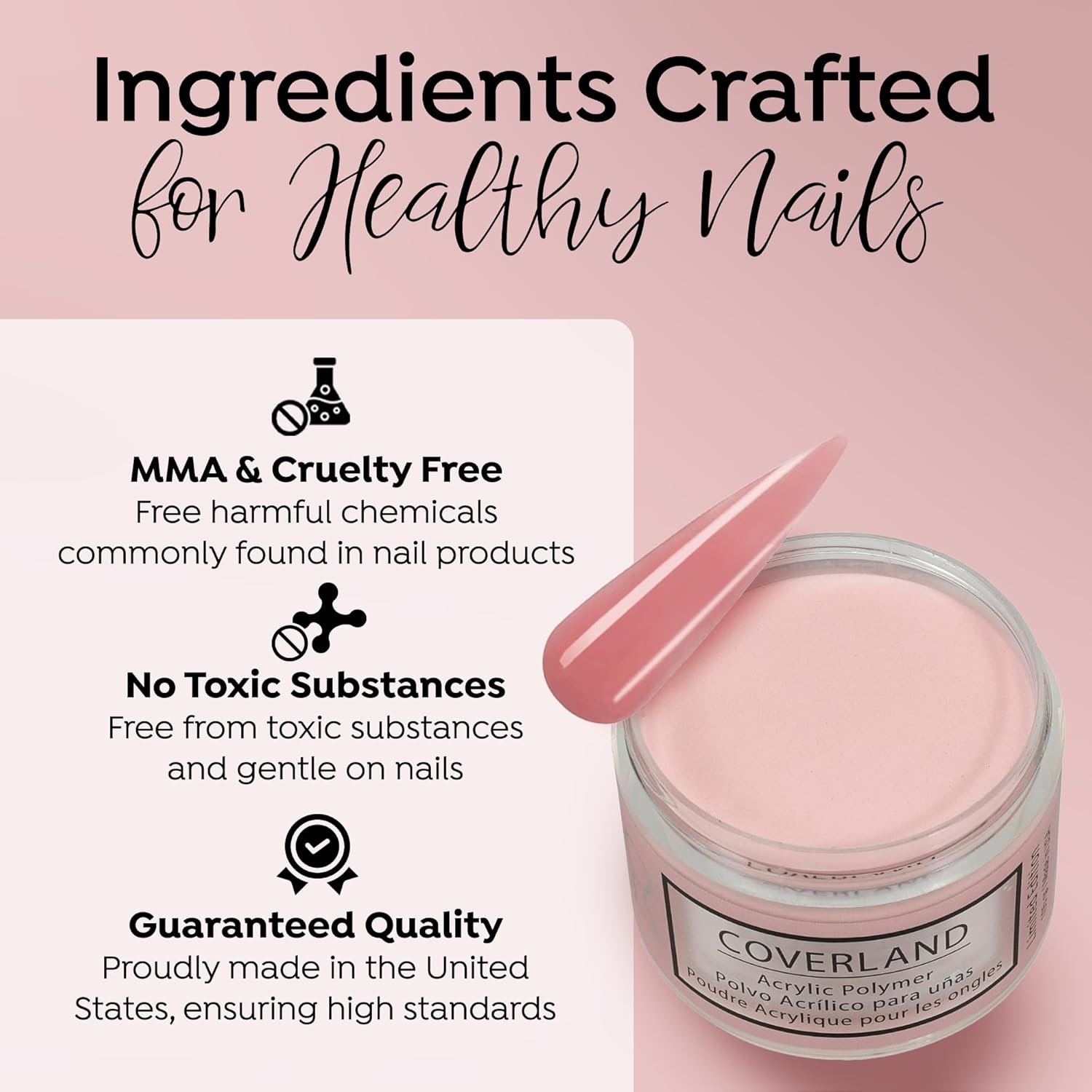 - βοΈππππ ππππππππ πππππ: The flexibility and adhesion properties of Coverland colored acrylic nail powder make it easy to shape nails with precision, and offers nice control for professionals who prefer to work with a polymerization rate of moderate to fast.