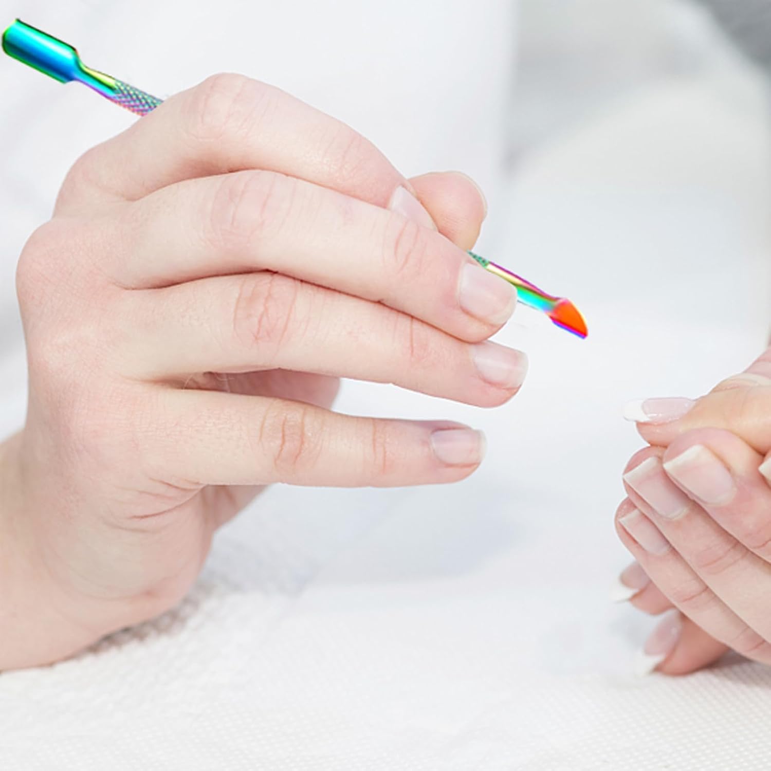 - Ergonomic Non-slip Handle Design -- Our professional cuticle remover tools set is designed with an ergonomic non-slip handle, providing you with a comfortable hand feeling, you can remover the cuticles more effectively. In addition, the chameleon design makes it a beautiful set of color manicure artwork.
