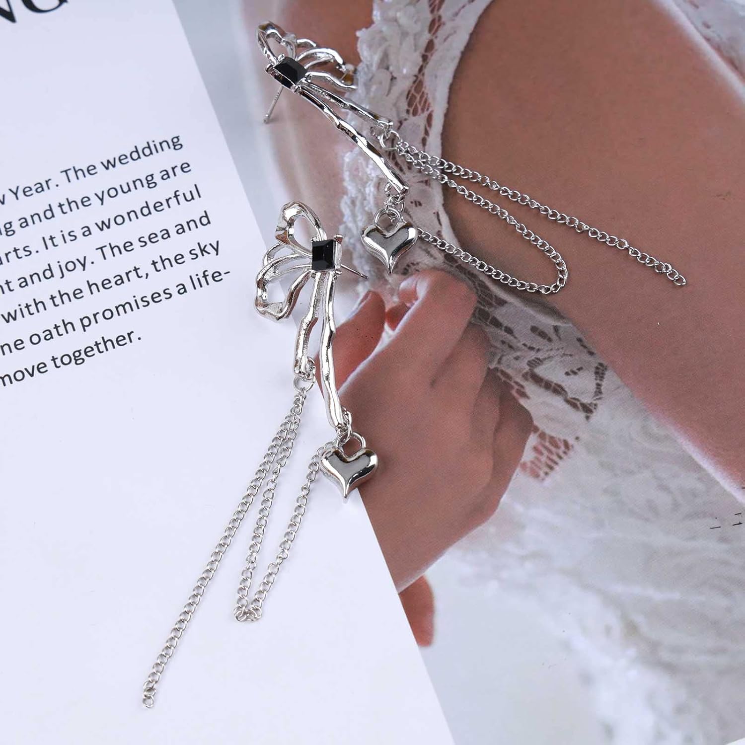 - Silver heart chain earrings.Gift Occasion:The Simple Elegance and Intricate Detailing,From Casual to High Chic.Suitable for any Occasion, Such as Beaches, Event Parties, Dance Parties, Dates, .Daily Collocations,Banquet,Weddings, etc.