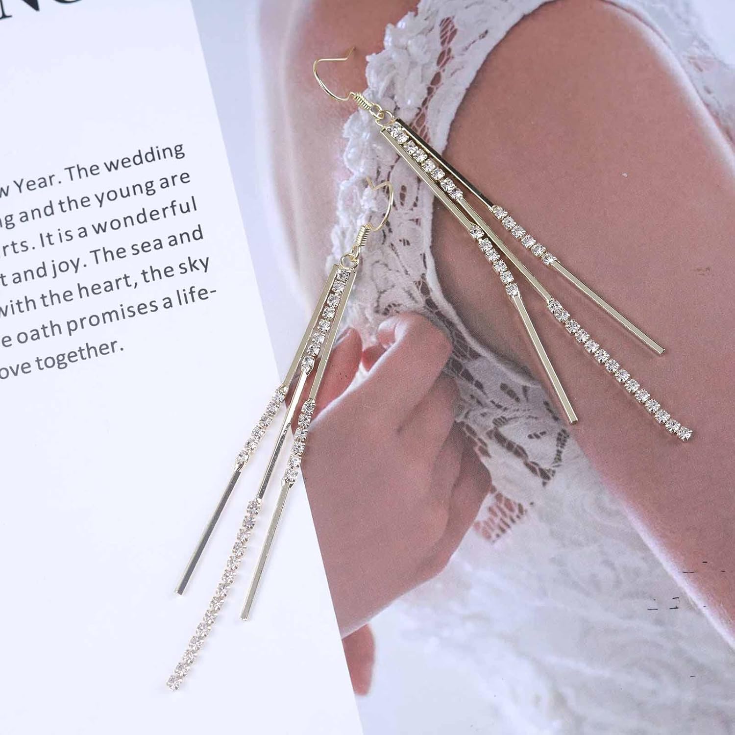 Vintage Crystal Tassel Earrings Rhinestone Bar Drop Earrings Long Rhinestone Chain Earrings Gold Cz Bar Hook Earrings Sparkle Tennis Chain Earrings Jewelry for Women