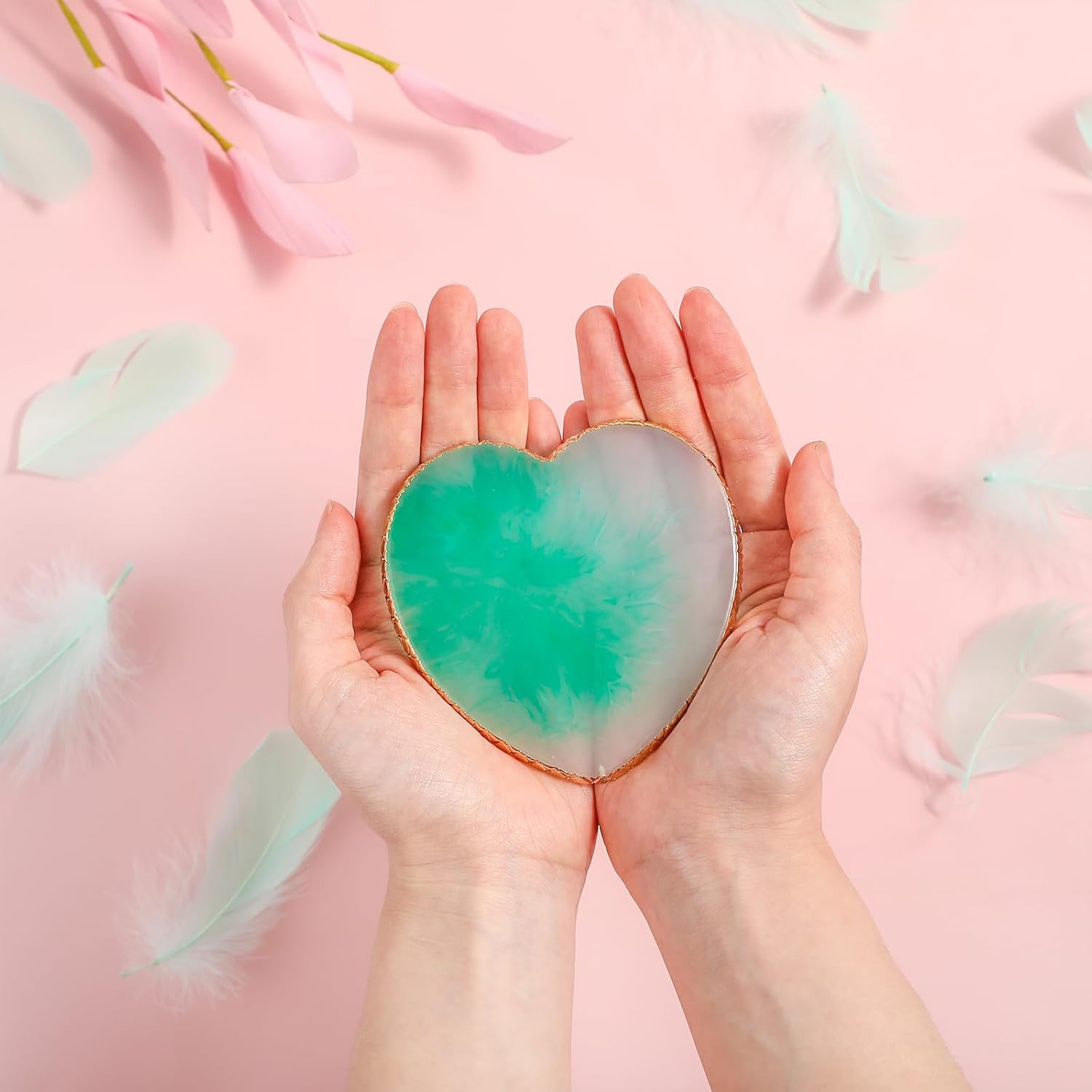 Sibba Resin Nail Art Palette Nail Mixing Palette Polish Color Mixing Plate Golden Edge Nail Holder Display Board Heart Shape Cosmetic Mixing Tools (Green)