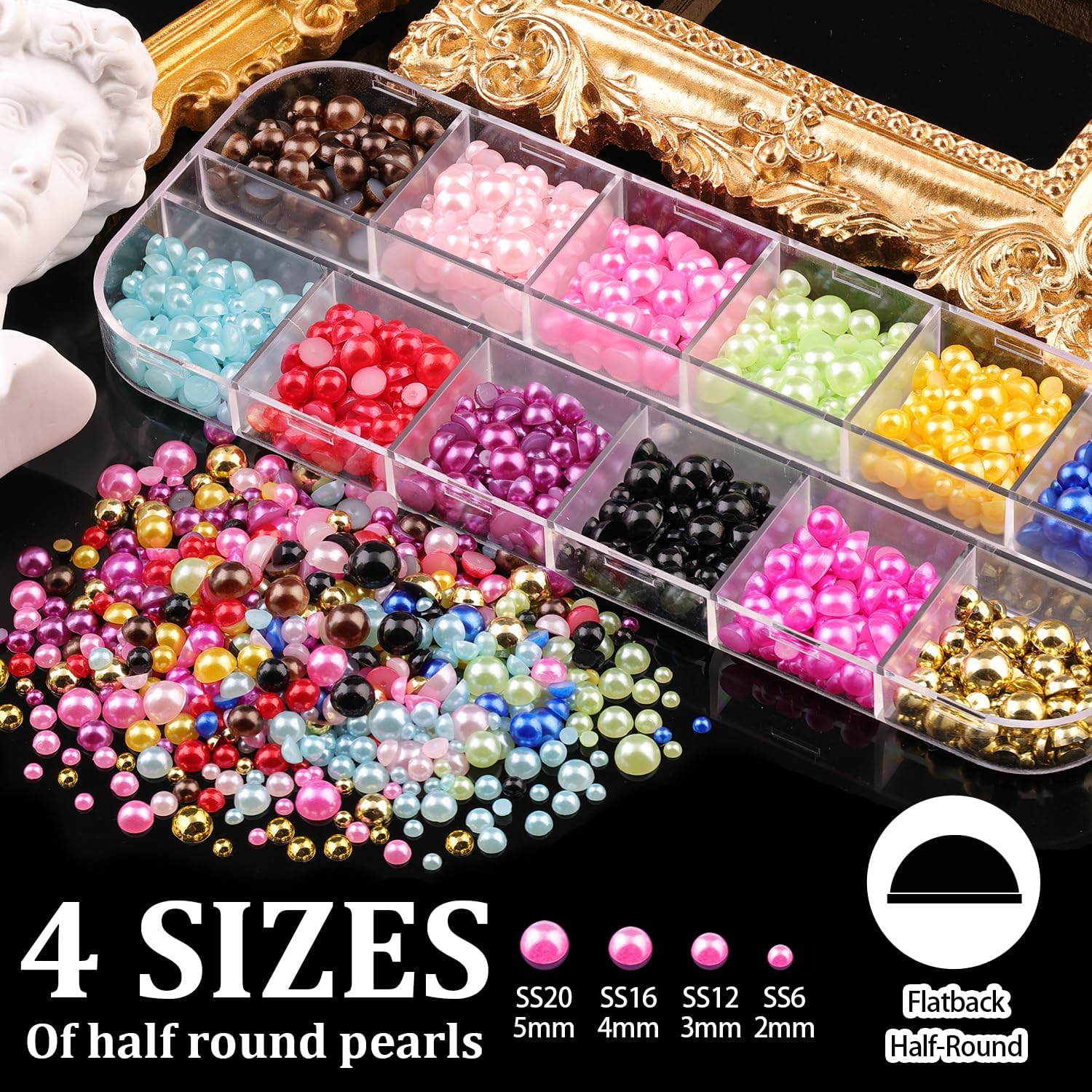 - 💎SUPERIOR MATERIALS & CHARMING COLORS -- The nail gems are made of durable, high-quality glass(clear diamonds are luxurious and versatile that is applicable to multiple scenes, and AB color nail jewels can reflect iridescent glamour). Our half-round flatback pearls in mixed colors that adopt light ABS resin as material are smooth and glossy. We suggest applying a top coat over the pearls after your nail art to better maintain the pearls' luster and color.