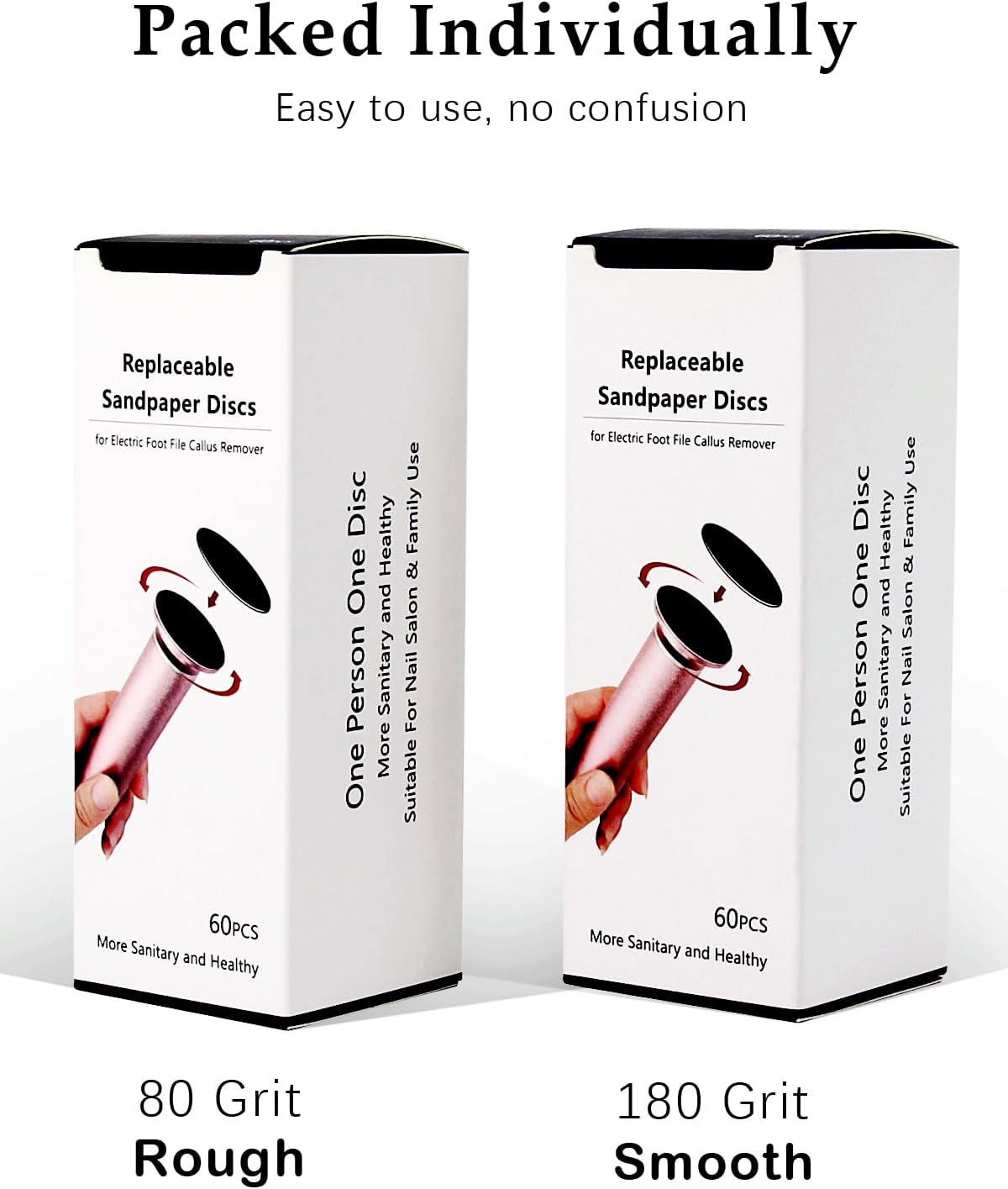 - Package includes: 60PCS replacement sandpaper discs (Rough 80 Grit) , 60PCS replacement sandpaper discs (Super Smooth 180 Grit).
