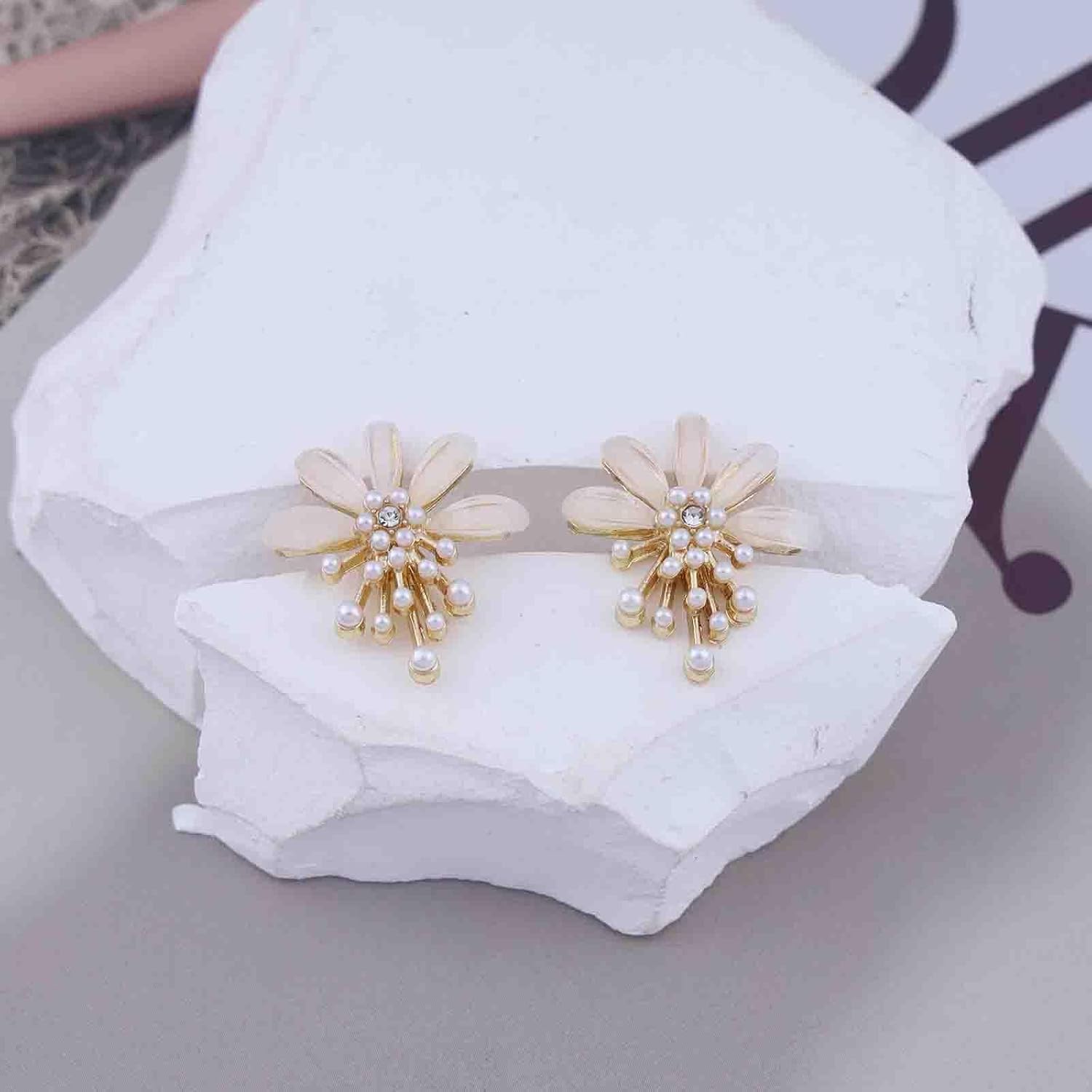 Vintage Flower Pearl Earrings Tiny Pearl Drop Earrings Enamel Flower Stud Earrings Gold Cluster Pearl Earrings Jewelry for Women