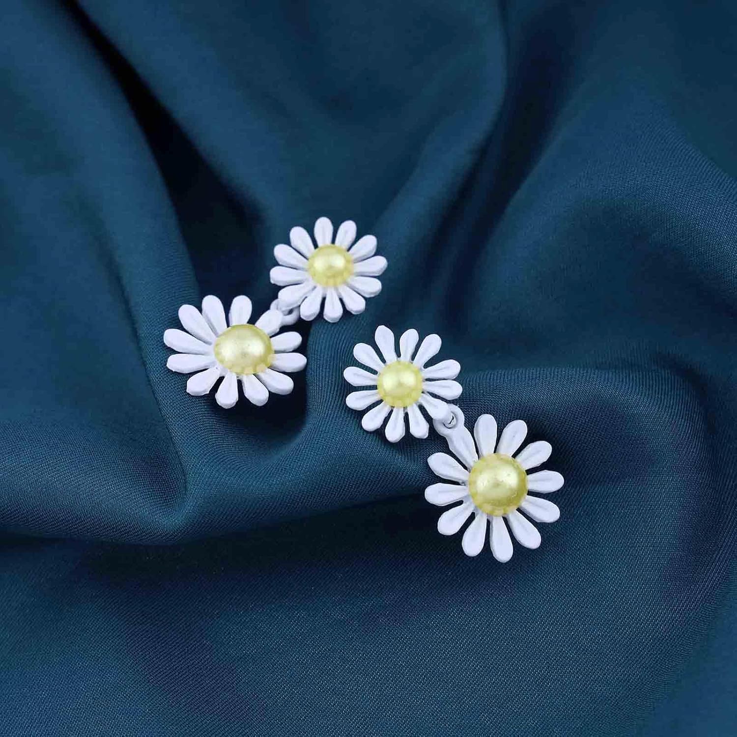 - Daisy flower drop earrings.Item Details:Handmade Item.Size:As Shown.Color:White.Materials:Quality Alloy/Flower.Location:Ear.Style:Boho/Vintage.