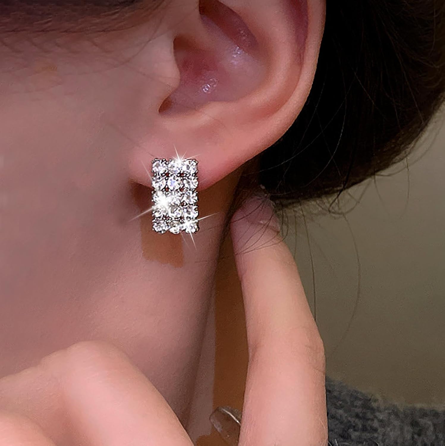 Vintage Rhinestone Square Earrings Square Crystal Earrings Silver Geometry Square Stud Earrings Sparkly Cz Bridal Earrings Jewelry for Women