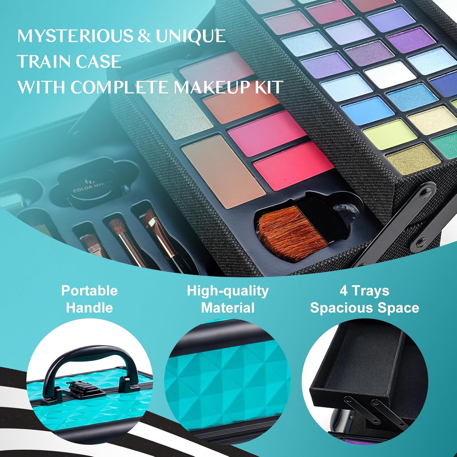 - Fabulous & Well Packaged Travel Makeup Kits: the travel makeup kit is well packaged! Special attention is given to ensure the powders and shadows are protected from breakage during shipping. Comes with aesthetic and reusable train case, it's perfect for travel or just storing anything neatly at home.