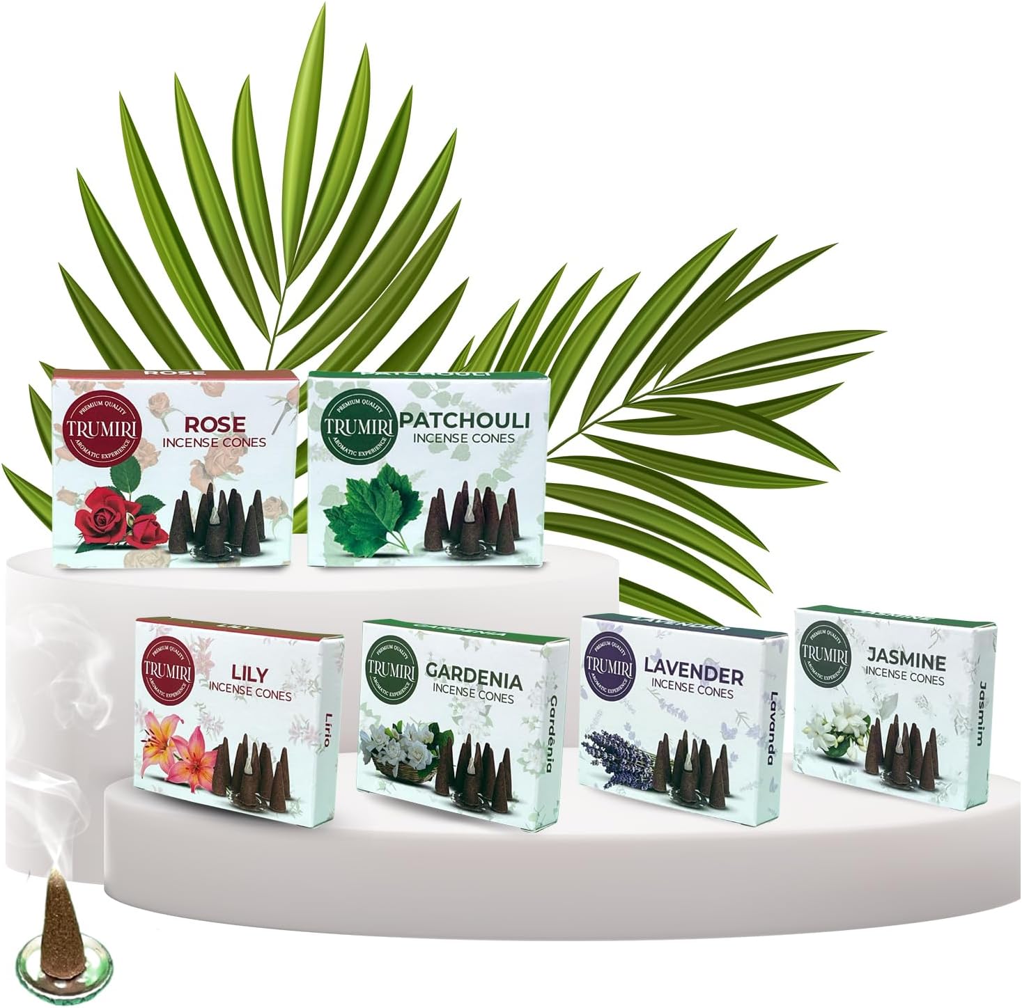 Trumiri Floral Incense Cones - Variety Pack - Total 60 Cone Incense (6 Scents x 10 Conos) - Rose, Lavender, Jasmin, Patchouli, Gardenia, Lily - Cone Incense Scents - Insense Cones - Incent Cone