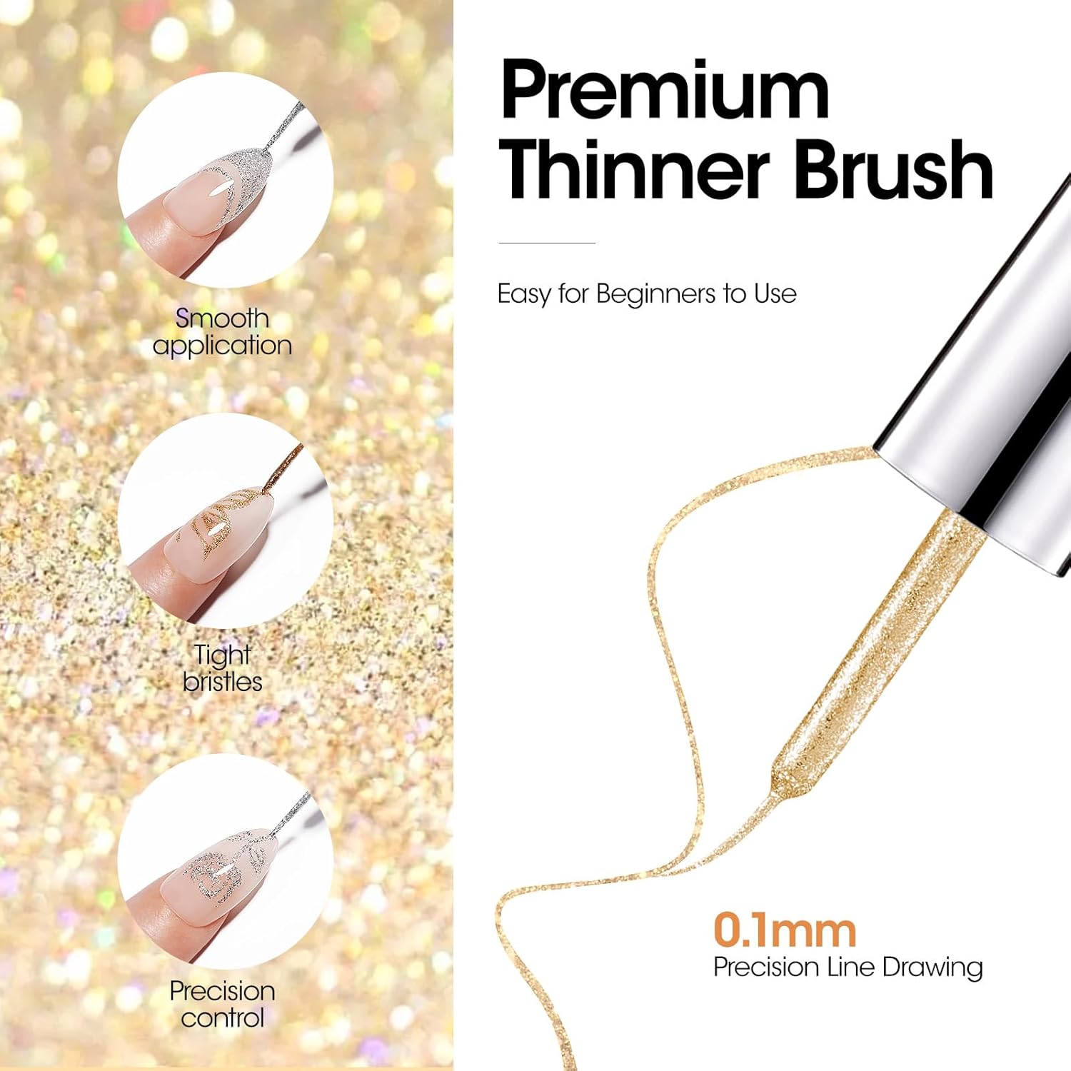 - Upgraded Built-in Brush: Spakle nail polish liner gel with slimmer and thinner line brush can provide you with clean and flawless lines, convenient for beginner or pro to create fantastic nail art. Be sure to wipe off excess polish to get a good defined line before applying