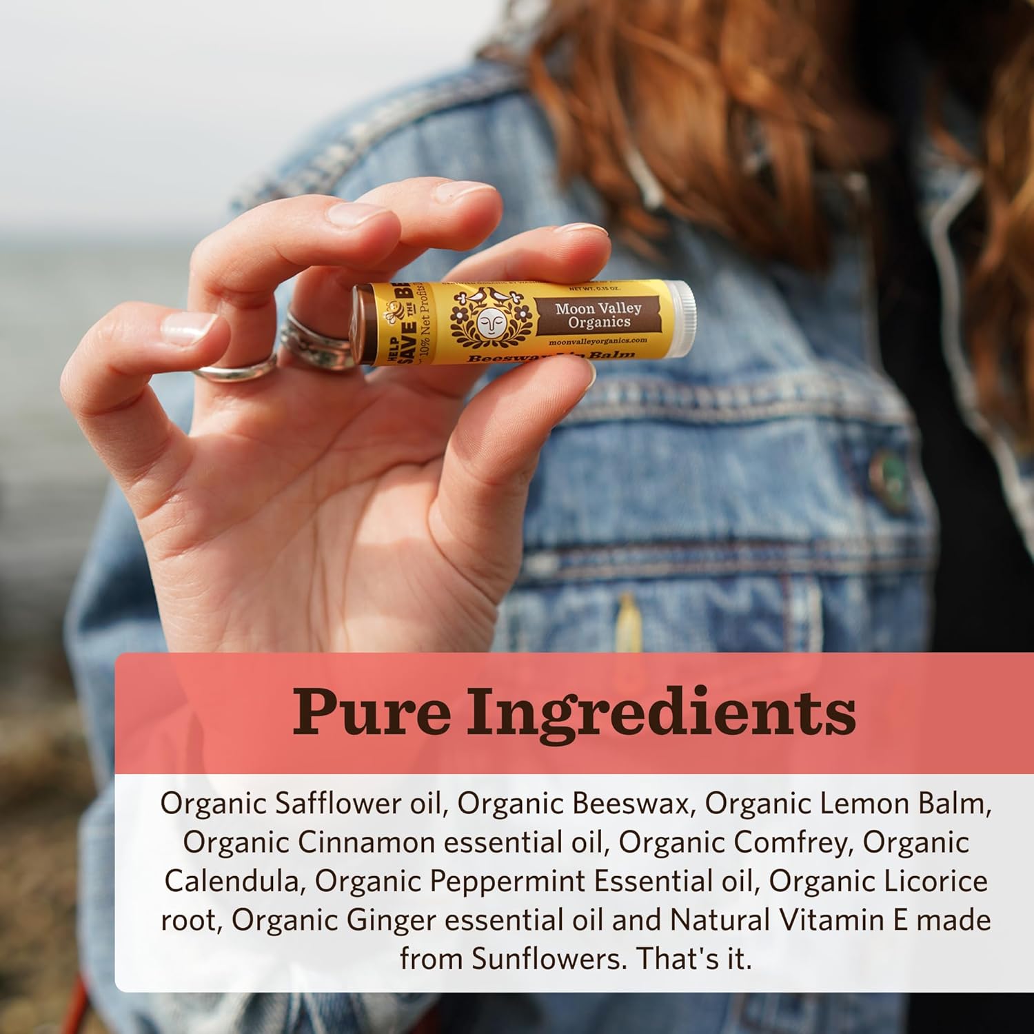 - ZINGY CINNAMON LIP BALM: Moon Valley Organics lip balm in Zingy Cinnamon uses organic ingredients, including essential oils, to deliver maximum moisture to your lips and cuticles. This is a bundle of 4 x 0.15 oz sticks.