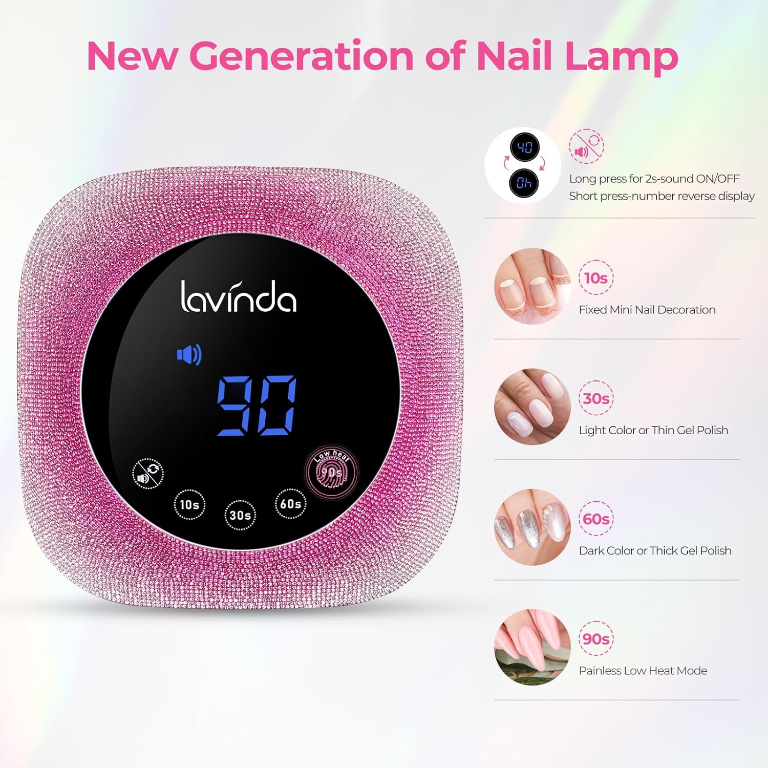 - 【Superior Satisfaction Service】: We are committed to the quality of our product. If you have any problem with the Lavinda nail lamp, please contact us through "contact sellers", and we will offer you a satisfactory solution within 24 hours. (Warm tip: Please make sure to use the original charger)-Non-Rechargeable Patent Number: US D1036009. Lavinda gel nail lamp is protected by U.S. design patent. All rights reserved.