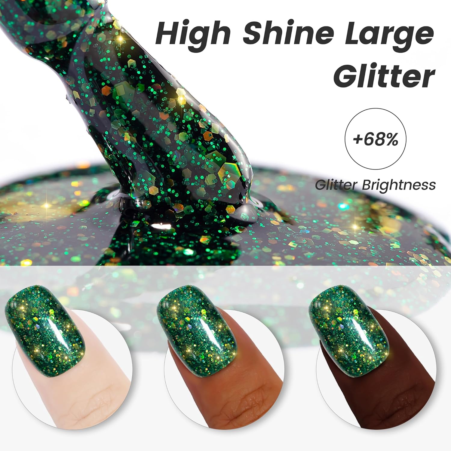 YTD Likomey Glitter Gel Nail Polish,15ml Sparkling Colorful Green Glitter Fall Winter Salon Home DIY UV Manicure Color Varnish,SF359
