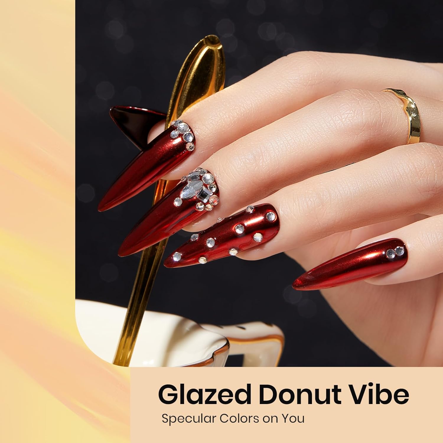 Beetles Gold Chrome Nail Powder Set - 8 Colors Sliver Holographic Mirror Effect Iridescent Golden Red Brown Glitter Metallic Nail Polish Chrome for Nail Art Design