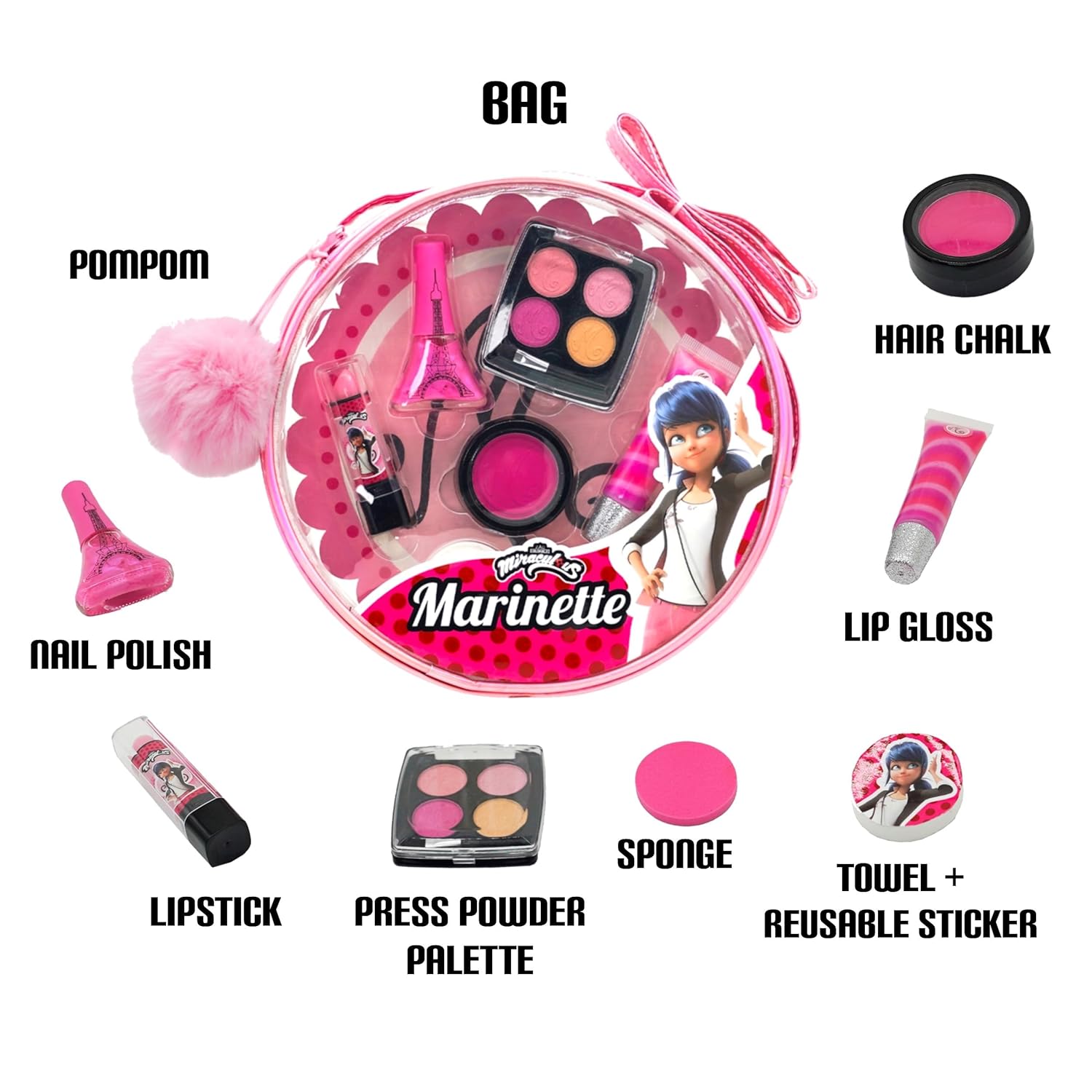 - Beyond Playtime: The Miraculous Ladybug kids' makeup set includes a charming bag that doubles as a delightful everyday accessory. Perfect for young fans, it ensures the fun and creativity continue well after the makeup session, making every day a magical adventure.