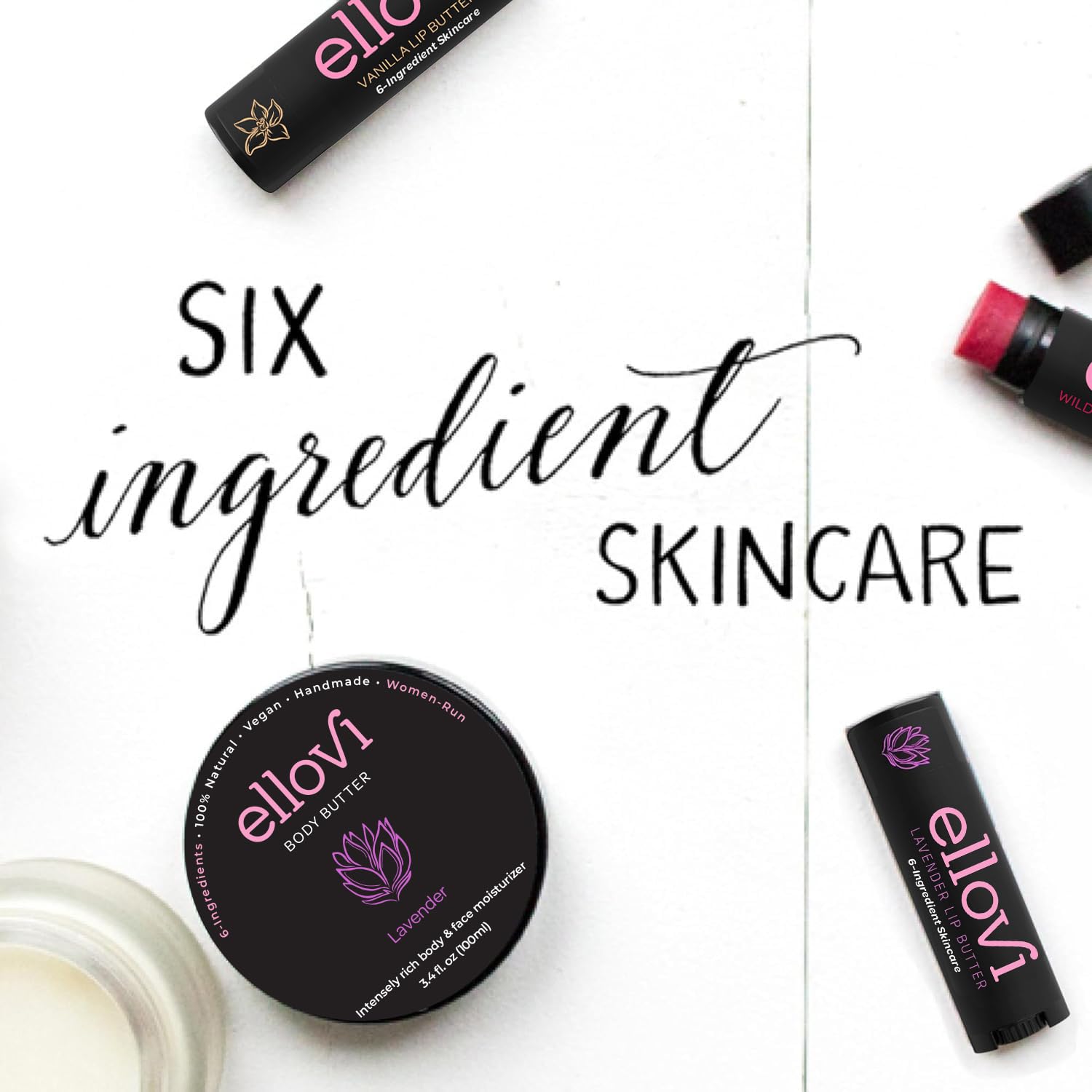 - ONLY 6 NATURAL INGREDIENTS: Macadamia Butter (Omega 7), Sunflower Wax, Coconut Oil, Shea Butter, Lavender & Ylang Ylang Essential Oils.