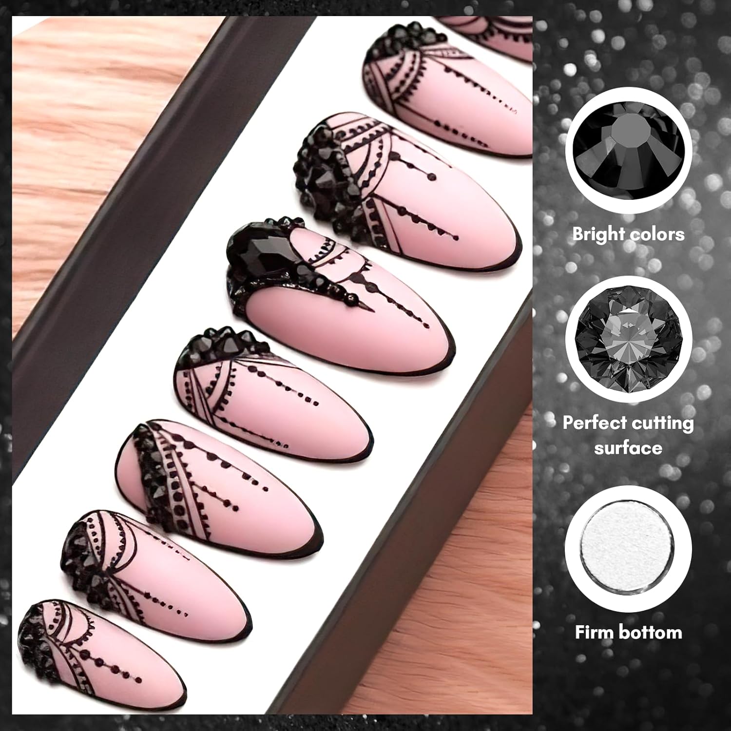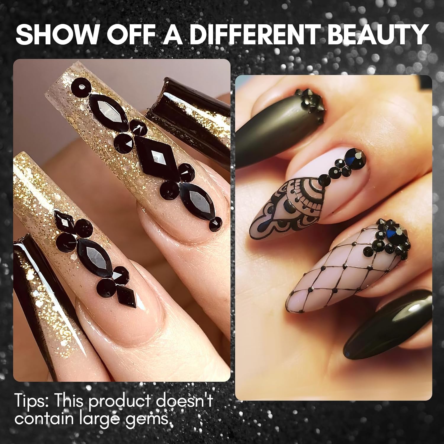 Makartt, 1110 Pcs Rhinestones Set, Black, Round, Multi-Size, Glass or Crystal, for DIY Crafts, Nail Art Supplies Accessories, Christmas Gift