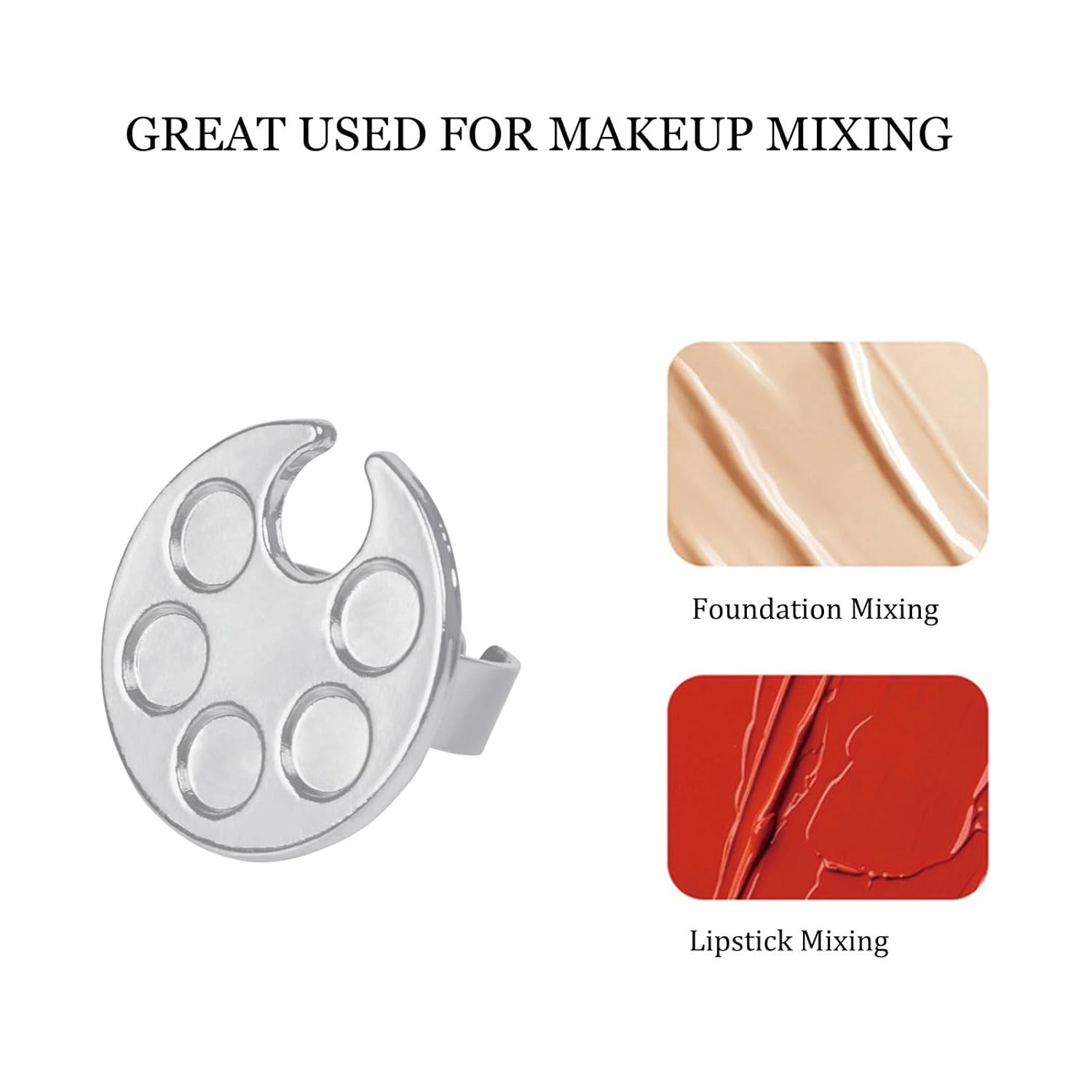 Makeup Spatula Set Stainless Steel, Make Up Tools Mini Mixing Tray with Finger Ring, Round Makeup Paint Palette