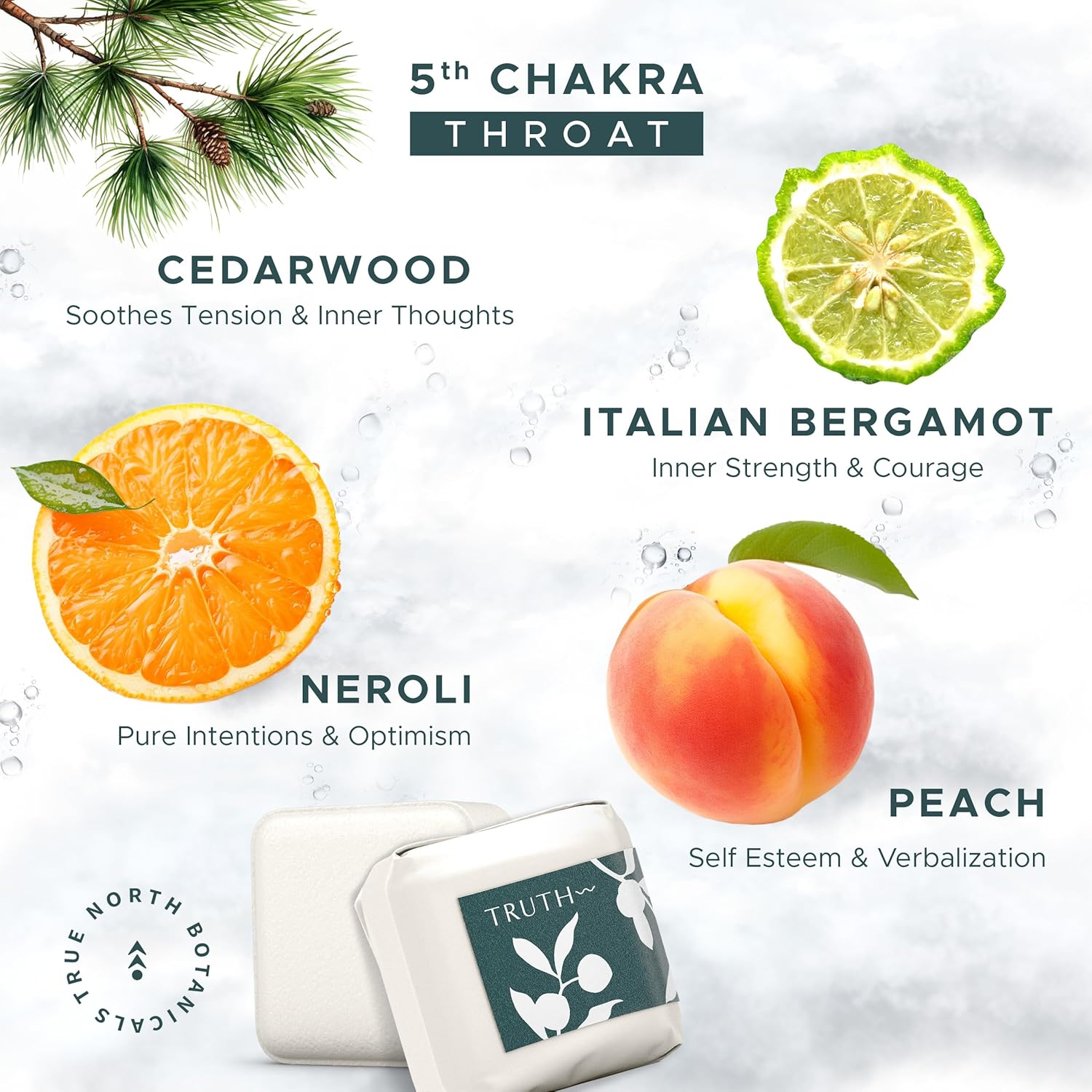 - Scent : 5th Chakra - Peach, Cedarwood, & Bergamot