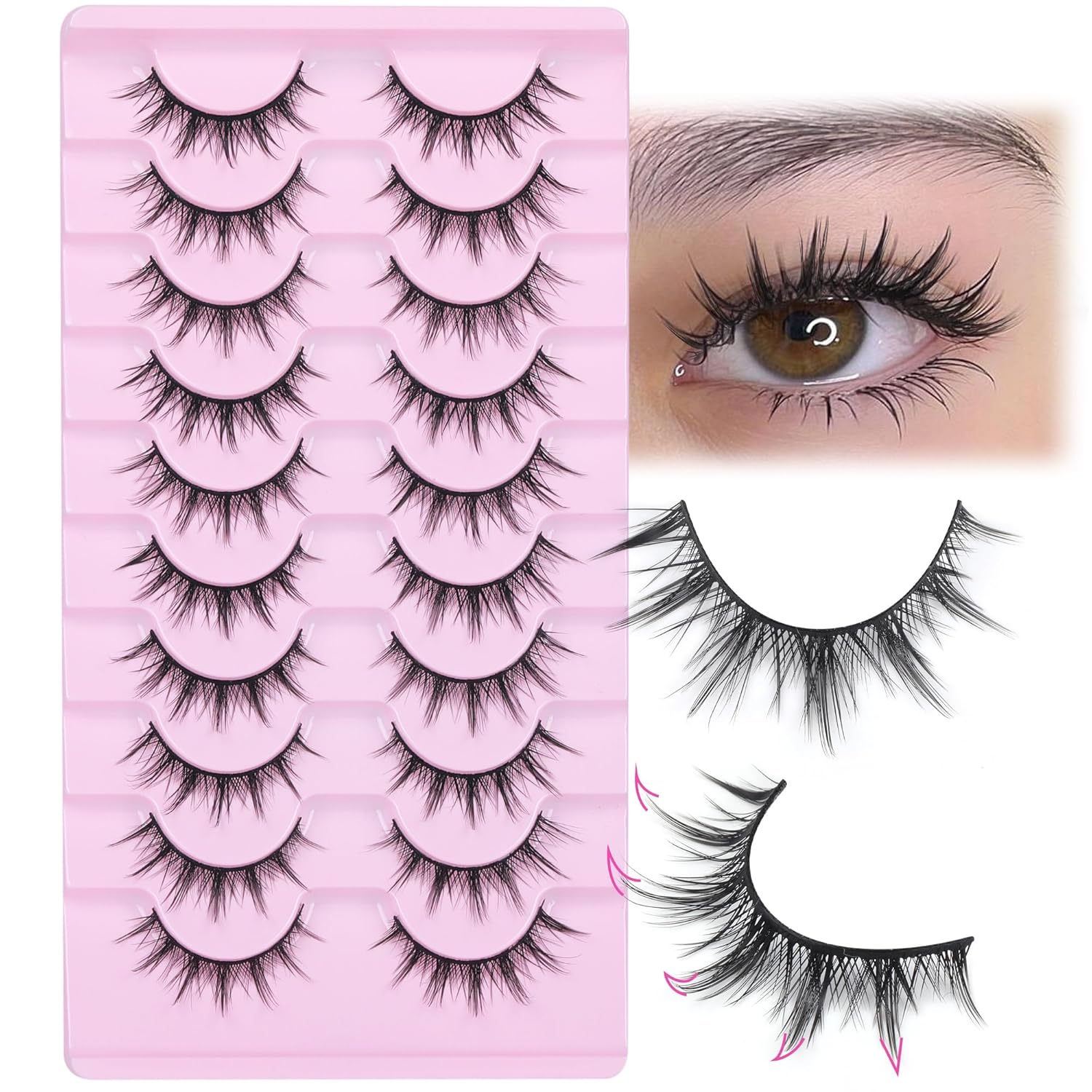 FANXITON Manga Lashes Wispy Natural Look Faux Eyelashes 10 Pairs Asian 3D False Eyelashes 14 mm Cat Eye Lashes Pack