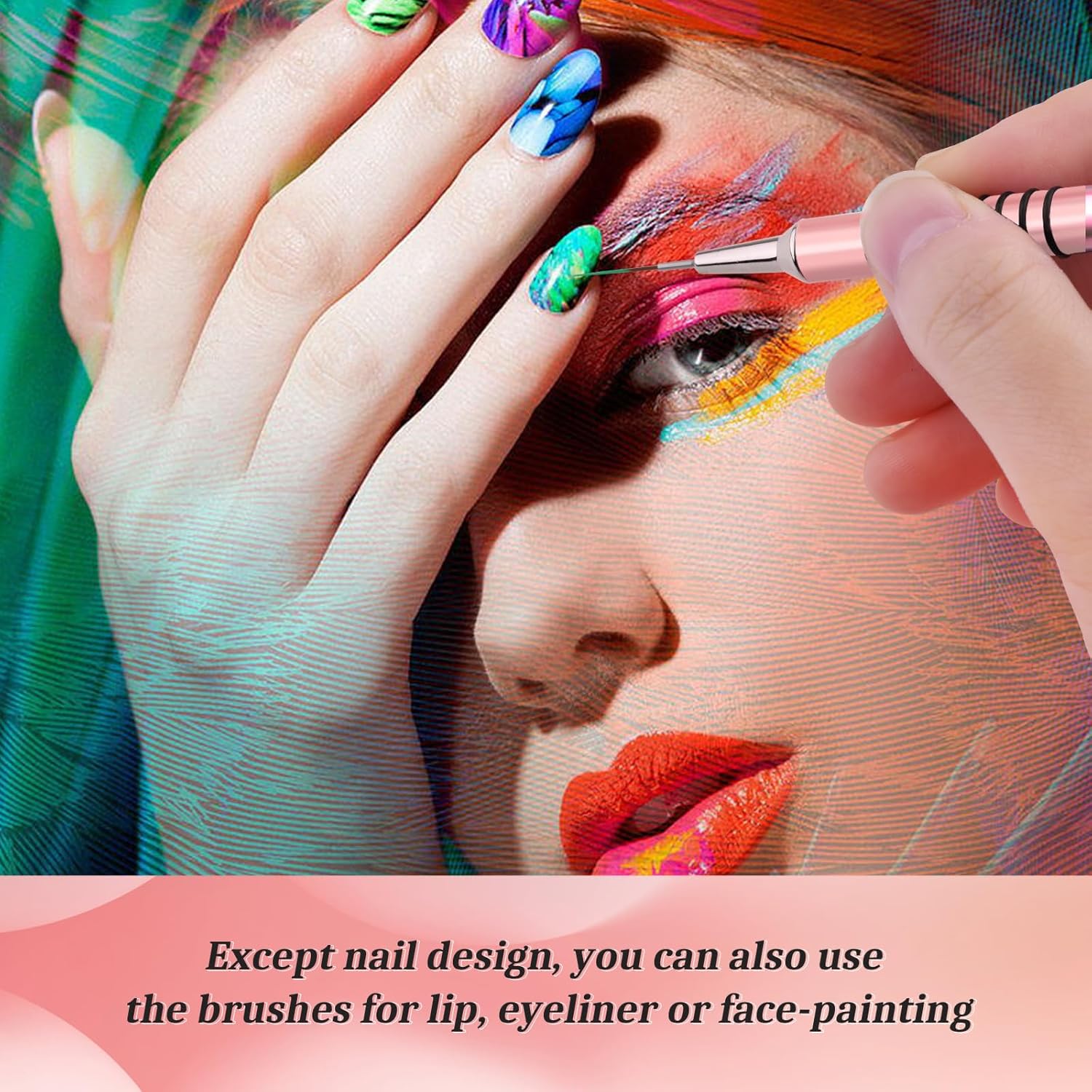 - [Multi-functional Nail Detail Brush] Nail drawing pen kit works with nail polish, acrylic paint and gel nail polish. It can meet all kinds of nail design needs like striping, dotting, filling color and drawing flowers, checkered patterns or delicate details. Unleash your creativity, you can also use it for lip, eyeliner or face-painting.