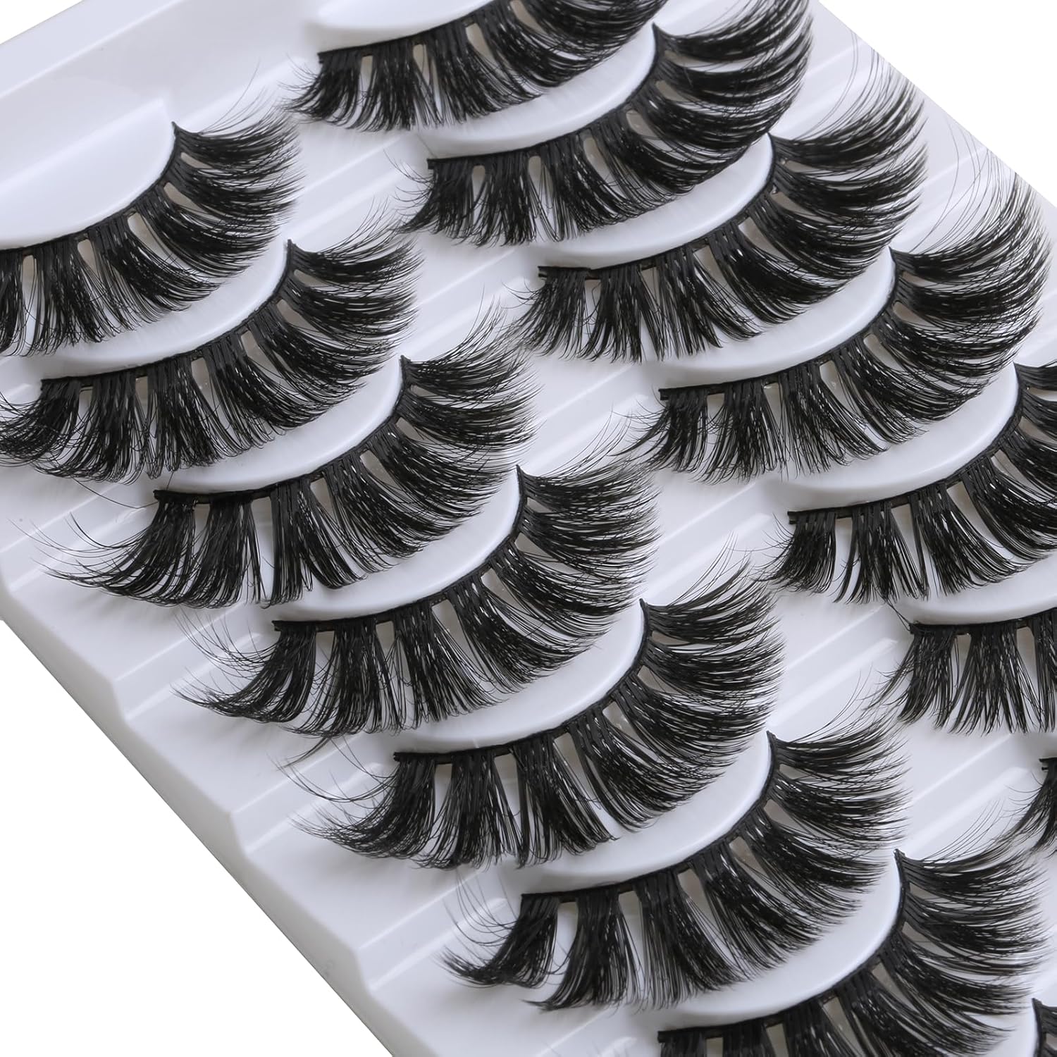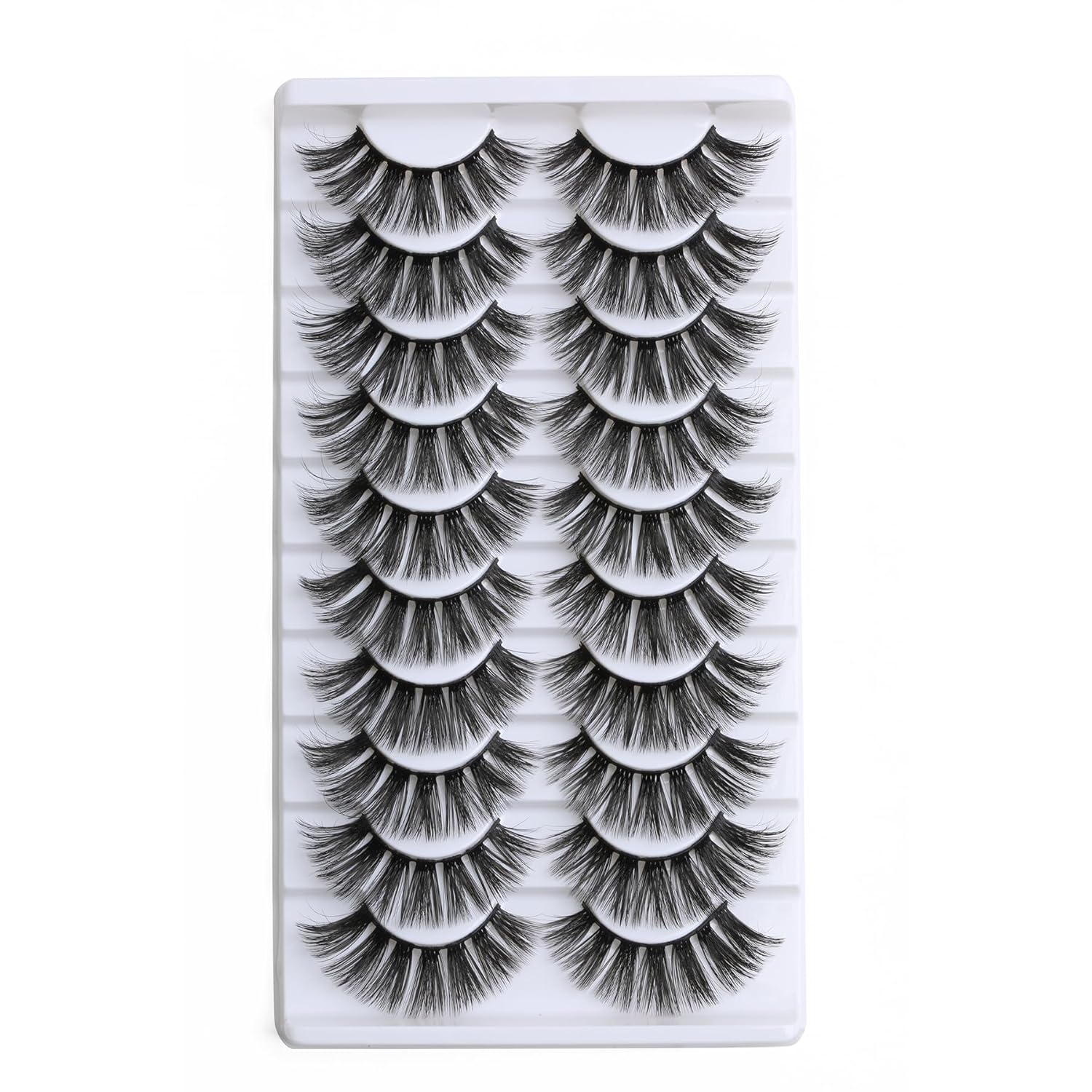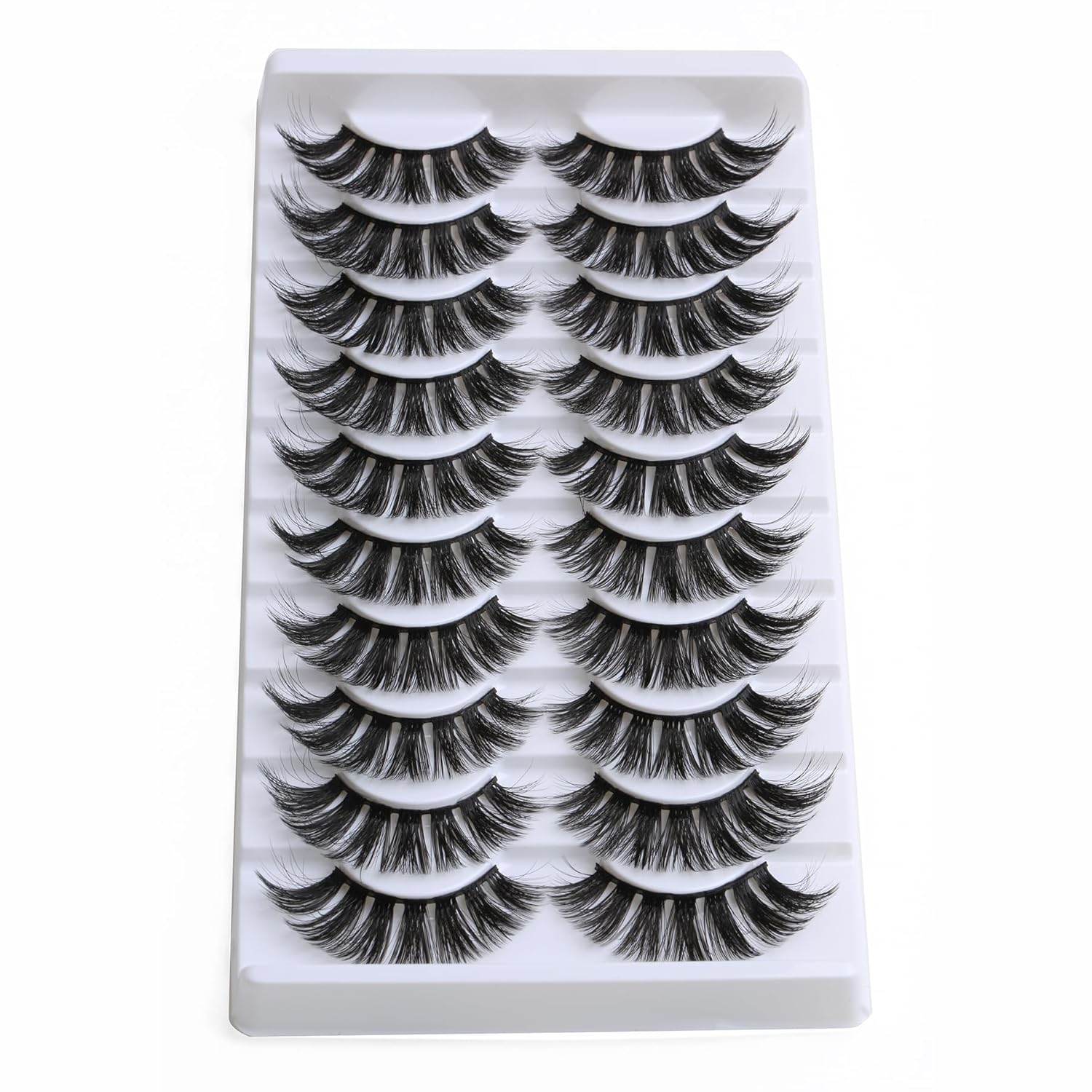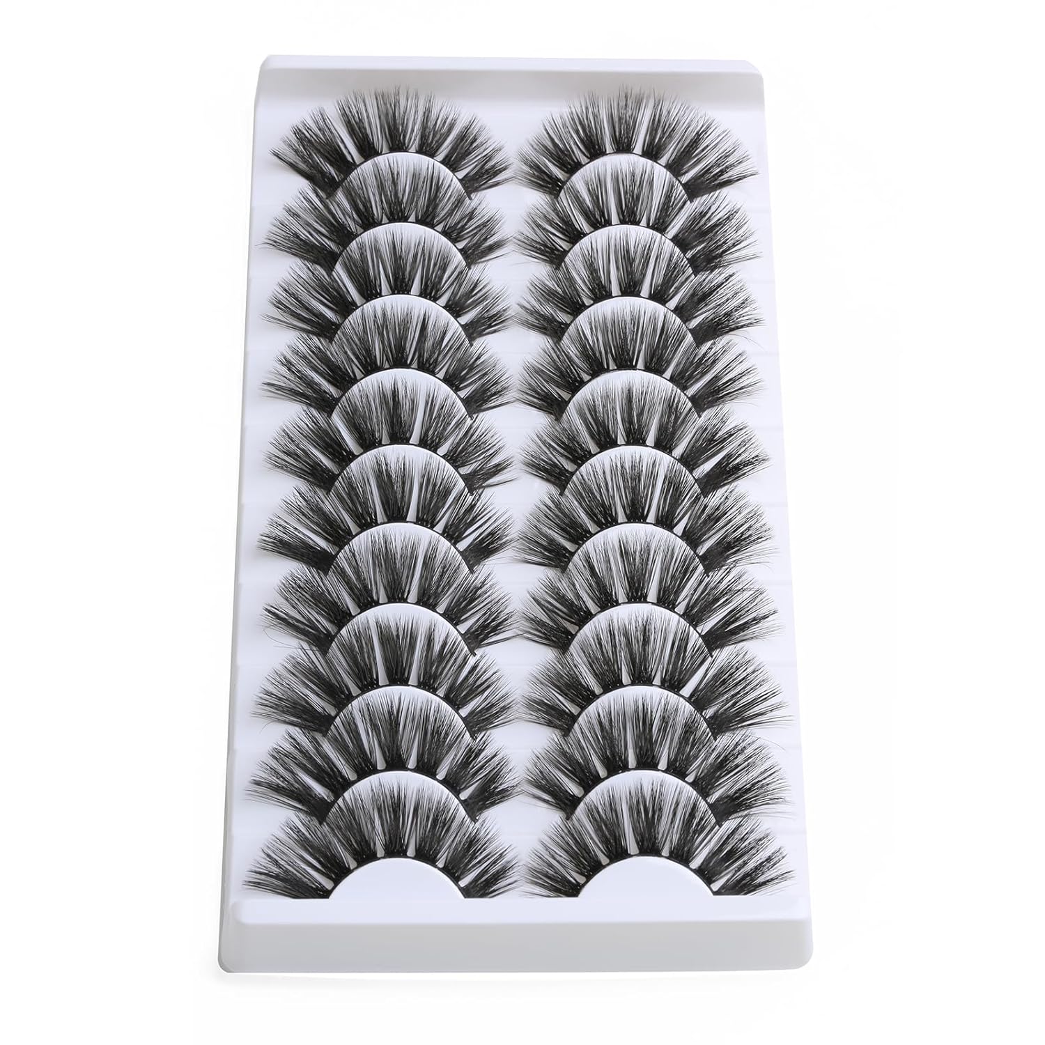 SUNWELL False Eyelashes 18mm Mink Lashes 8D Fluffy Faux Mink Lashes Dramatic Cat Eye Lashes Strips Soft Full Volume Fake Eyelashes 10 Pairs Pack