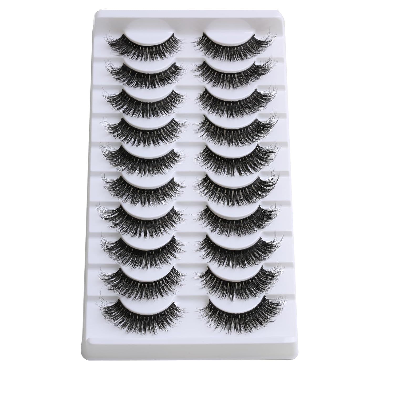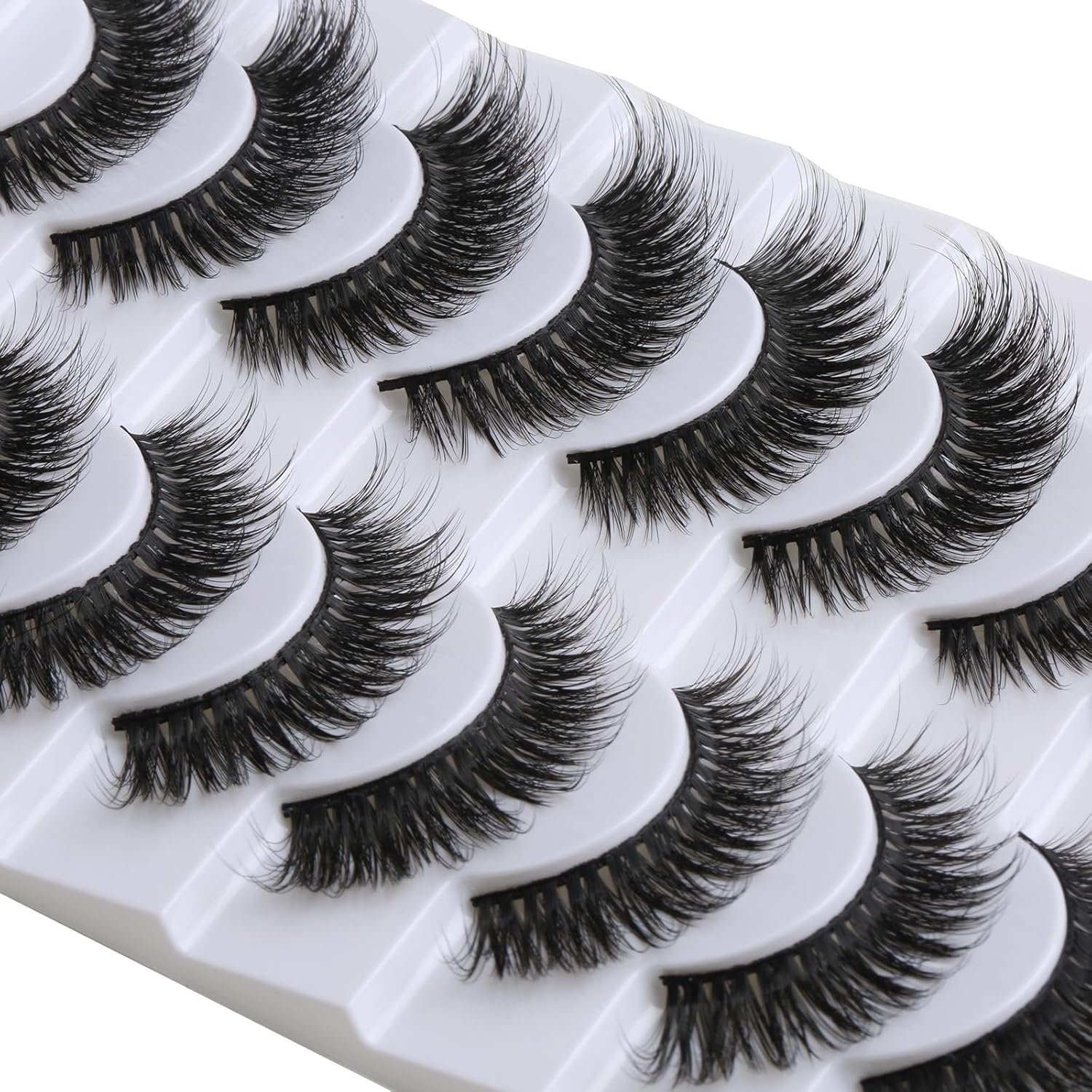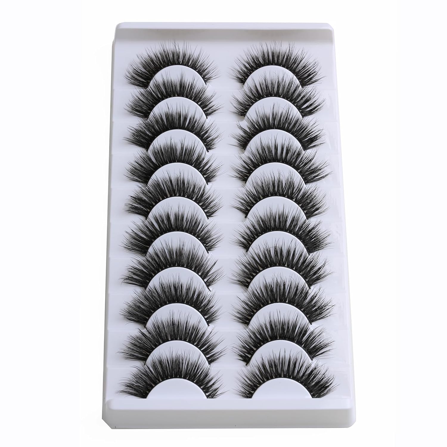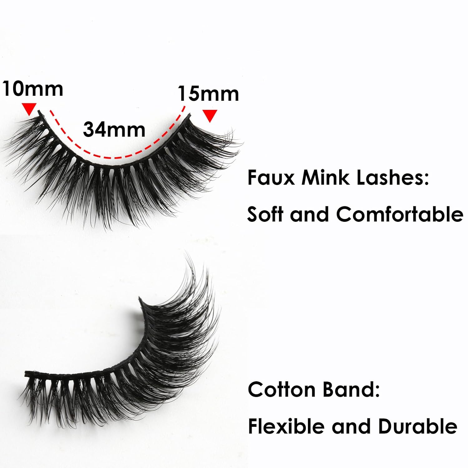 SUNWELL False Eyelashes 15mm Mink Lashes Cat Eye Lashes 8D Fluffy Wispy Foxy Eye Fake Lashes Strips Natural Look Faux Mink Lashes 10 Pairs Pack