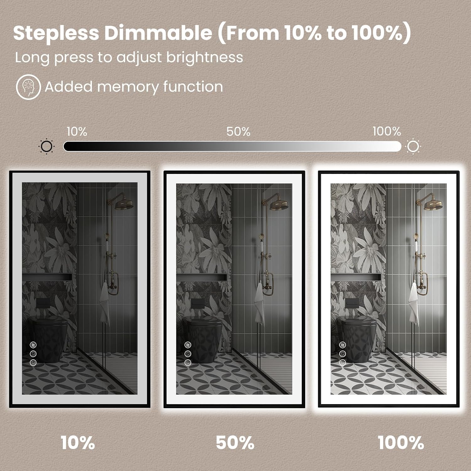 Amorho 55" X36" LED Bathroom Mirror with Black Frame, Front Light and Backlit(Controlled Separately), Stepless Dimmable, Anti-Fog, Shatter-Proof, 3 Colors, Memory