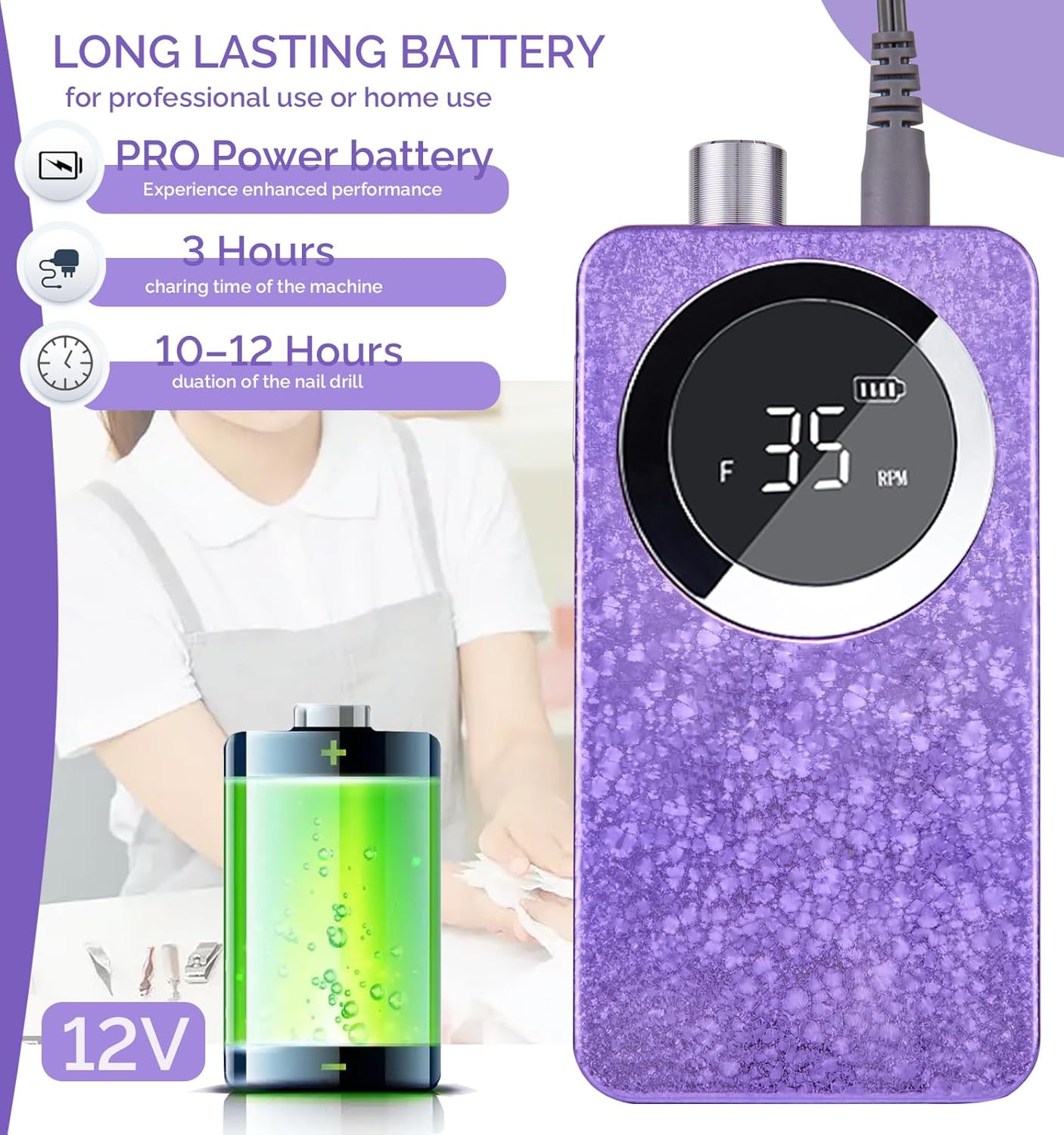 - 【All-Day Cordless Freedom】 Powered by a 2600mAh high-capacity lithium battery, this cordless nail drill runs 10+ hours straight after just 3 hours of fast USB-C charging (no more mid-manicure dead batteries!). Toss it in your bag for travel, use it at your salon station, or keep it by your vanity—no cords, no limits.