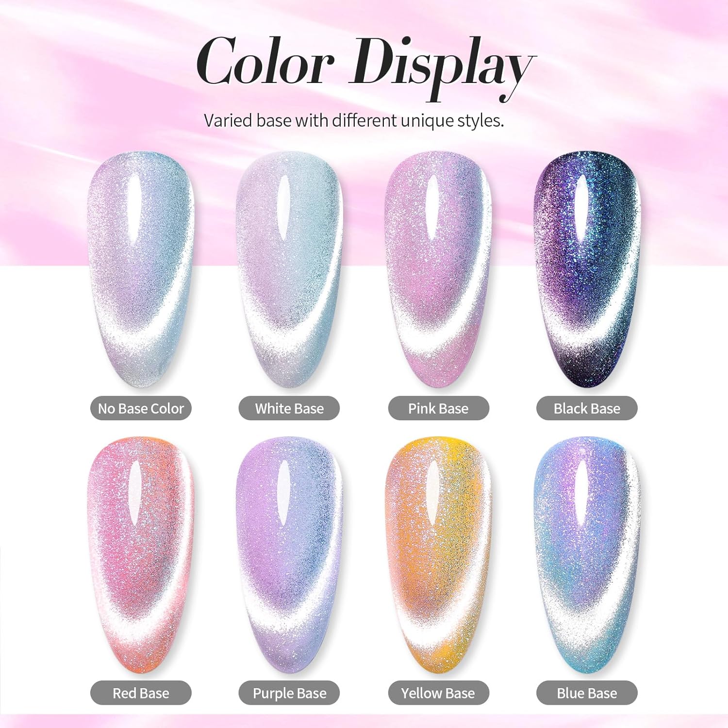 - COLORFUL EFFECT: Born Pretty cat magnetic eye nail powder is finer than ordinary nail powder and has a chameleon effect. They will show different colors and shapes in different angles or light. Very sparkly and shiny, this nail powder will make you the unique one at any parties.