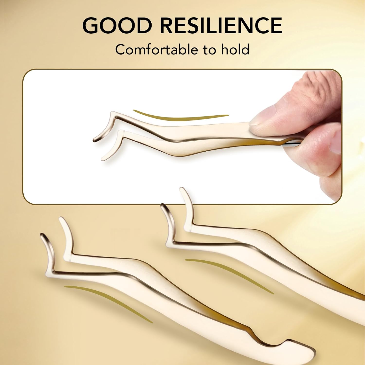 GOLLEE Eyelash Applicator Tool DIY Cluster Lash Tweezers Curved Eyelash Tweezers for Easy Lash Application and Removal, DIY Lash Applicator Tweezer For Strip Lashes Clusters Lash