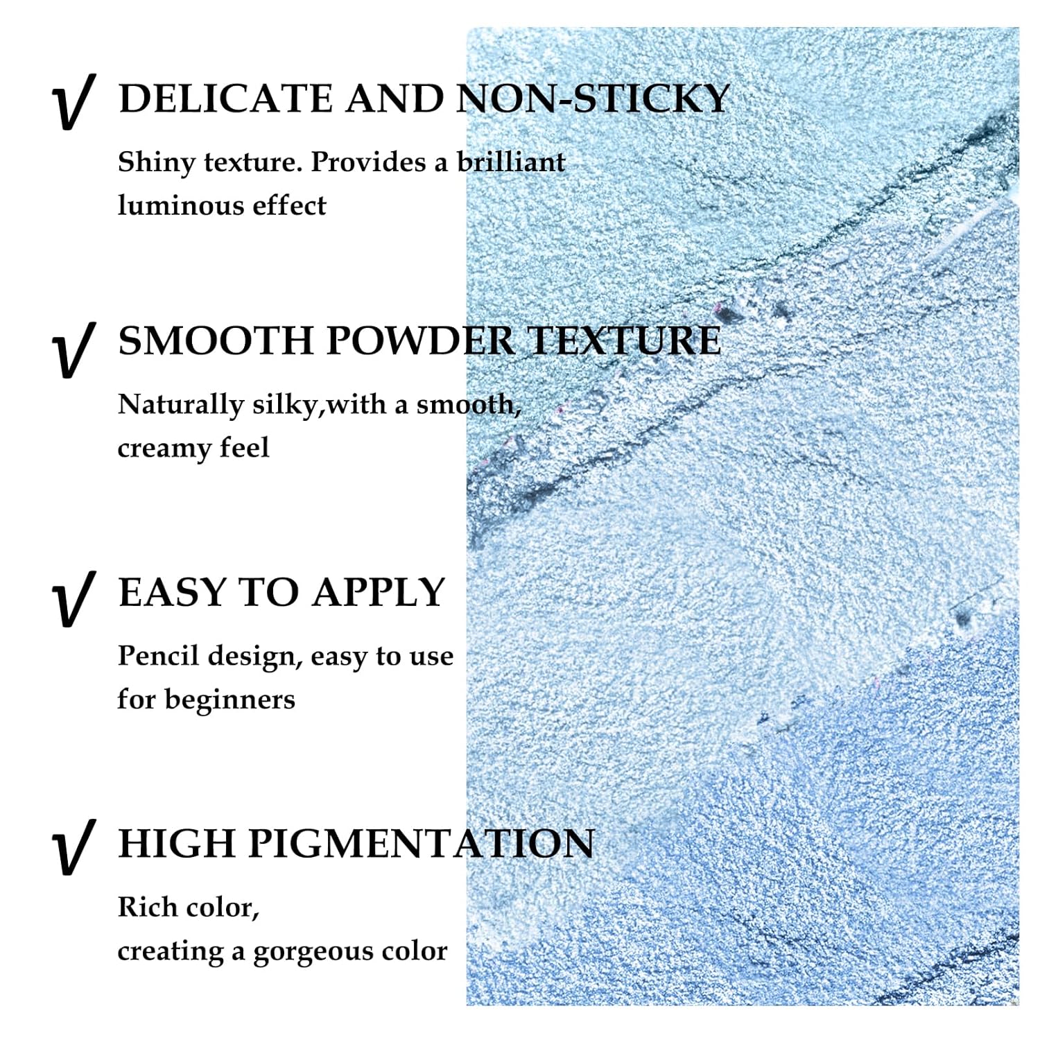 - Eye Highlighter Stick: Glitter Eyeshadow Pen has a shimmer color. You can easily apply a gradient look with it. Multiple colors for you to choose from to create different eye makeup.