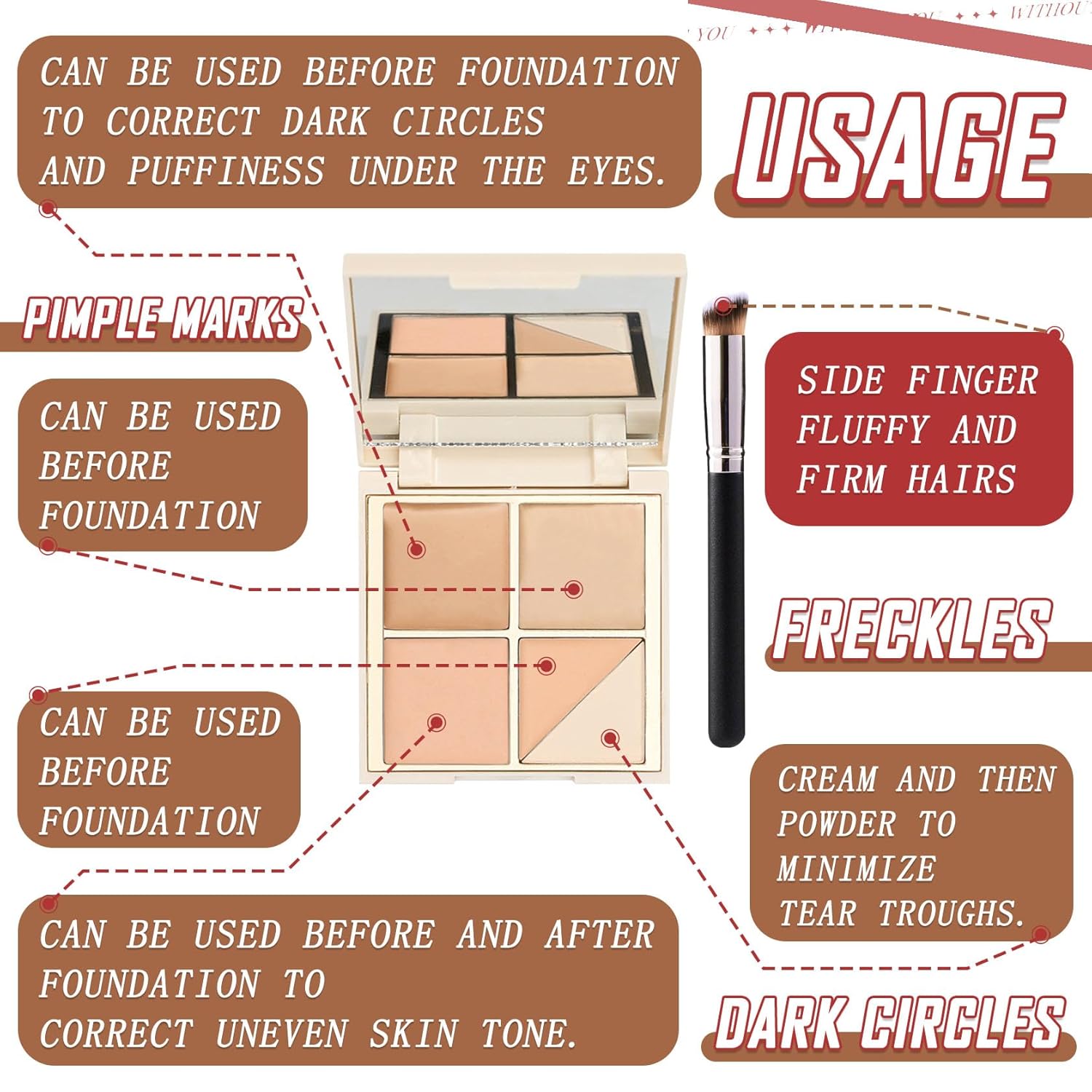 - đăPowerful ConcealerăCorrecting concealer palette is used to cover all kinds of facial imperfections, long-lasting concealer, quick application and refinement of facial contours, make your facial features more three-dimensional.