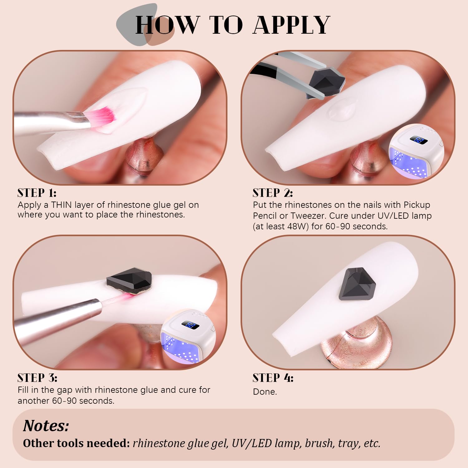 - Included Components : Nail Rhinestone, Tweezer, Pickup Pen