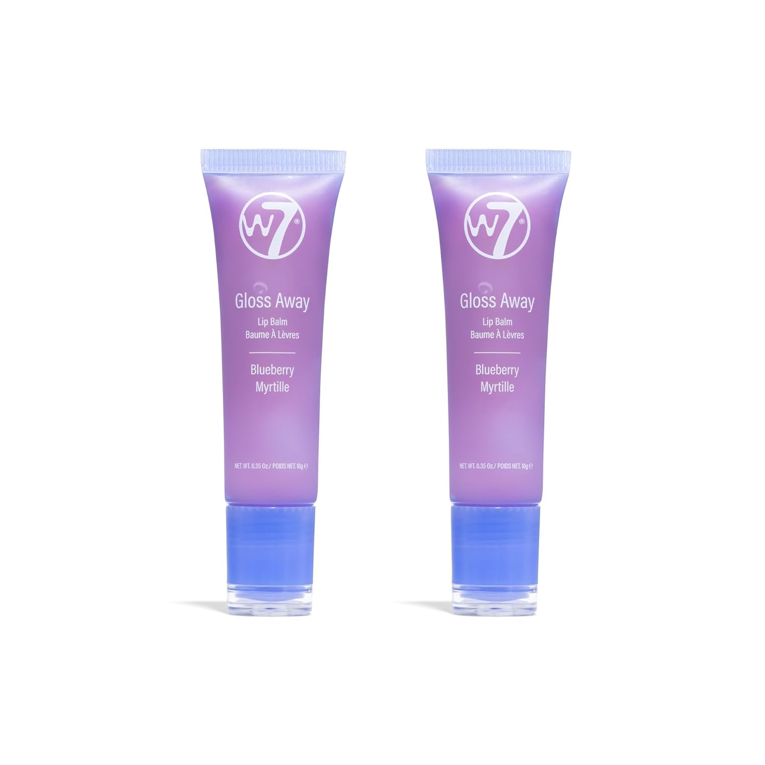 W7 Gloss Away Lip Balm - 2 Piece Set - Nourishing Lip Balm Formula With Shea Butter - Blueberry