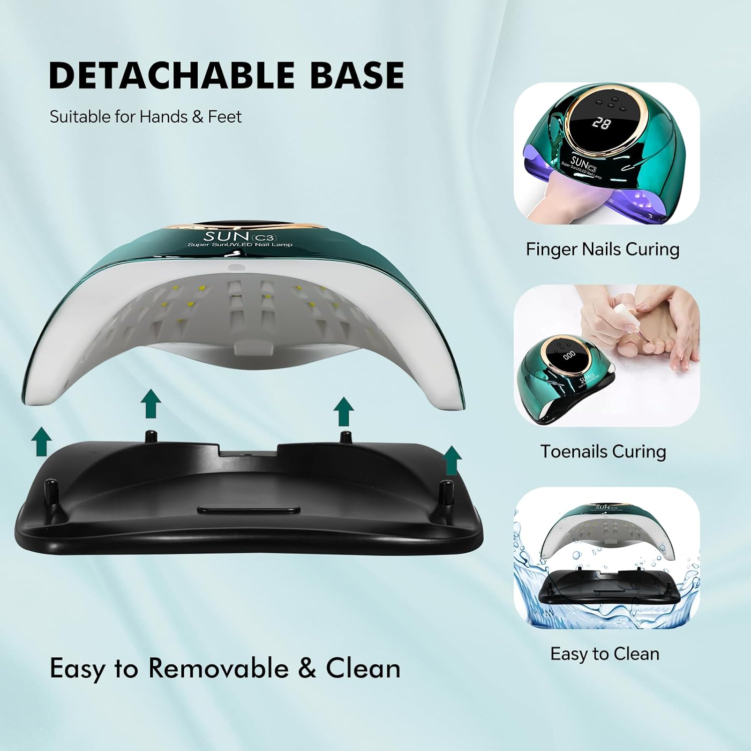 - đăColoured Glaze Green Paint& ABS MaterialăABS Material, make this gel lamp have long service lifetime. If the surface is accidentally stained with nail polish, just wipe it gently with a cotton cloth. Detachable base design is more convenient for toenail gel drying. Hands and feet Mode can switch at will.