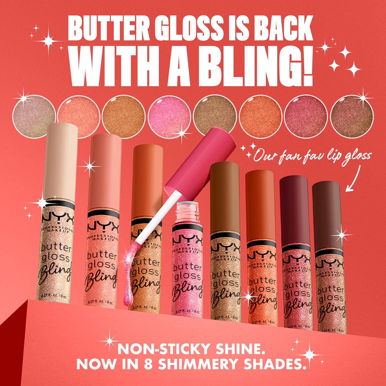 NYX PROFESSIONAL MAKEUP Butter Gloss Bling Lip Gloss, Non Sticky and Shiny Vegan Lip Makeup - Shimmer Down