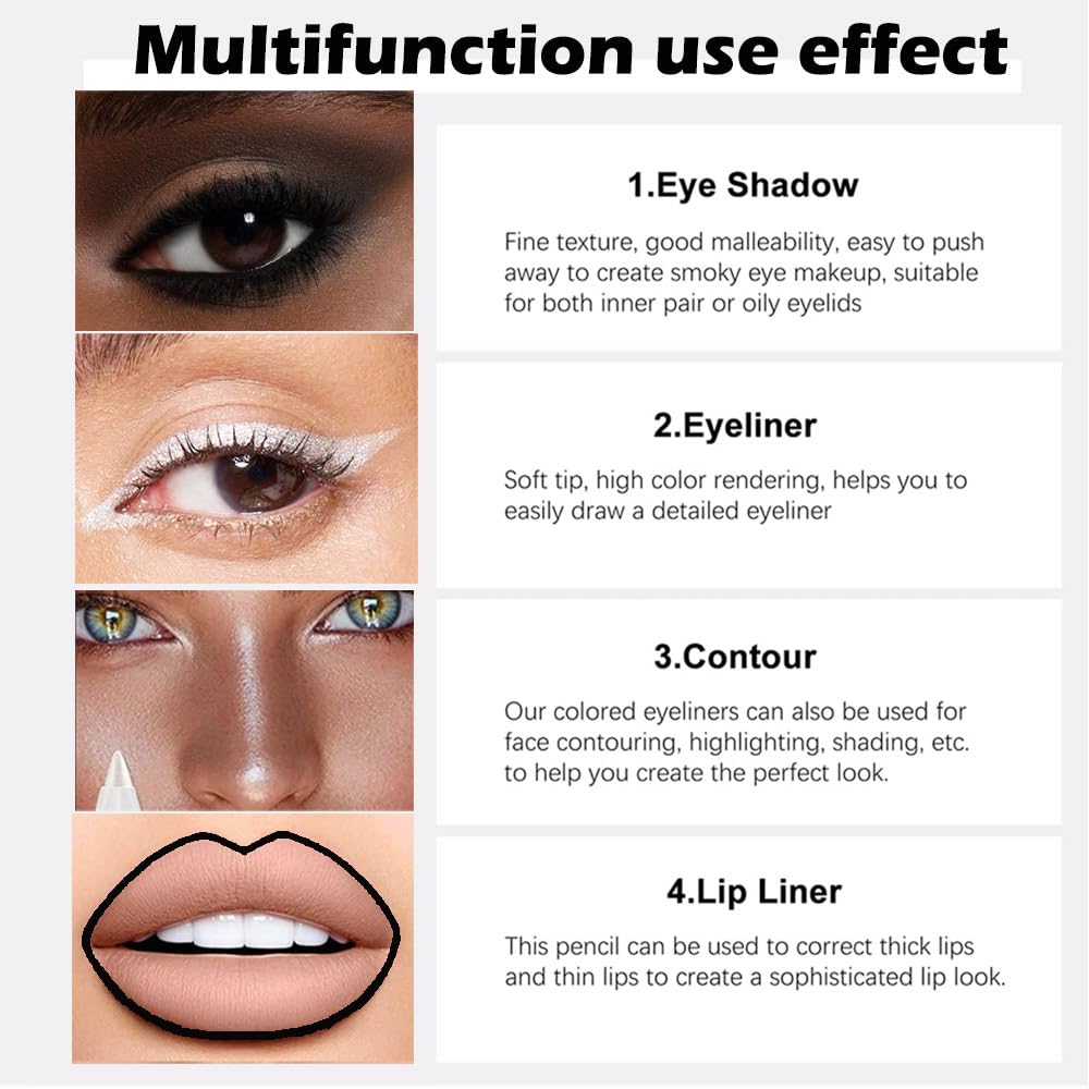 - ❤【Multifunctional Use】The Colorful Eyeliner Pencil can be not only for eye makeup, but also a lip liner for lip liner, or an eye shadow and eyebrow pencil. This 4-in-1 colored eyeliner set can give you a different sense of use.