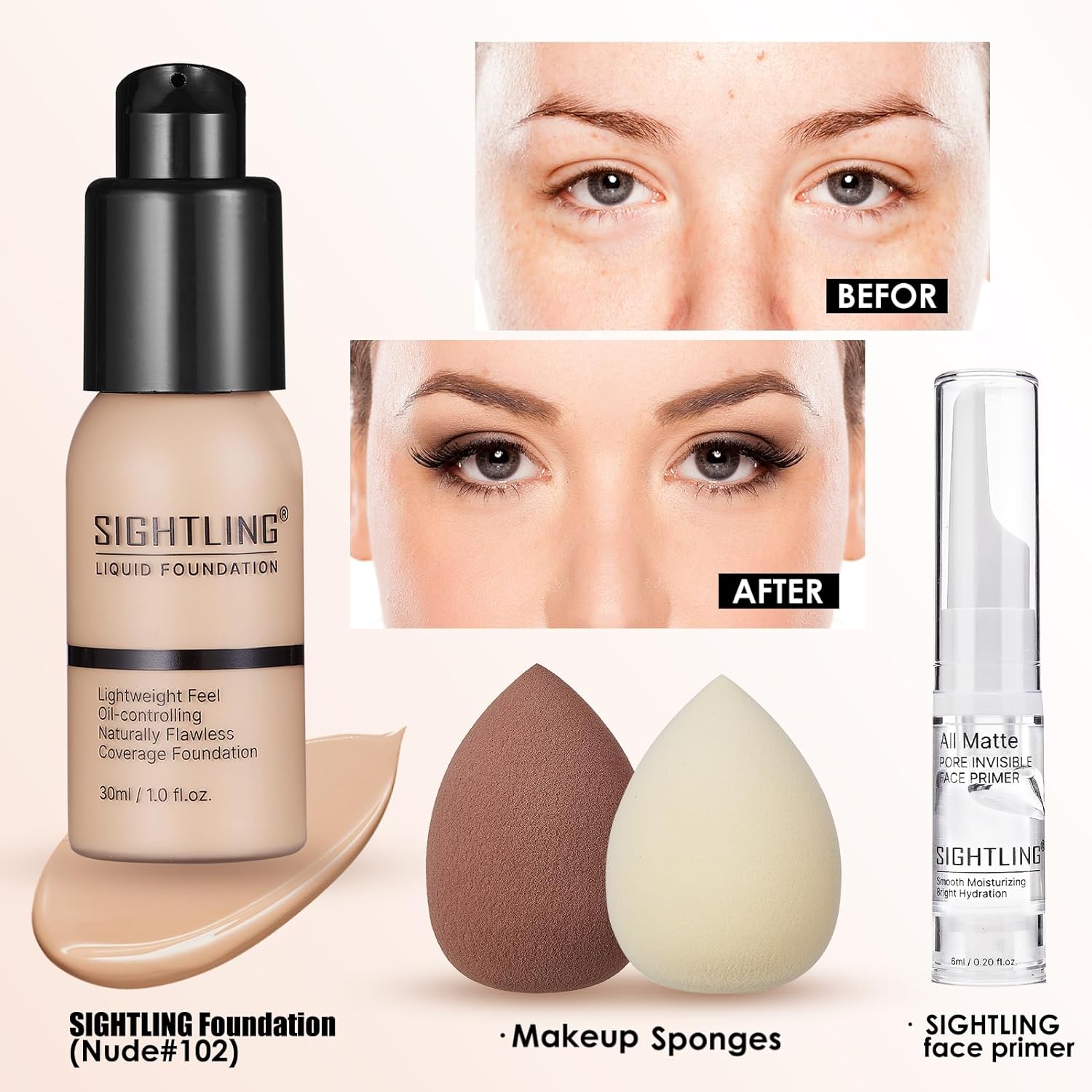 - 【All in One Makeup Kit】This Makeup Gift Set includes everything you need for a full-face look: face foundation makeup, eyeshadow palette, contour palette, Contour Stick, eyebrow powder, powder puff, lipstick, eyeliner, Marscara, cosmetic brush and travel bag. Designed to cater to all your daily makeup essentials, this kit is perfect for both beauty beginners and seasoned pros.