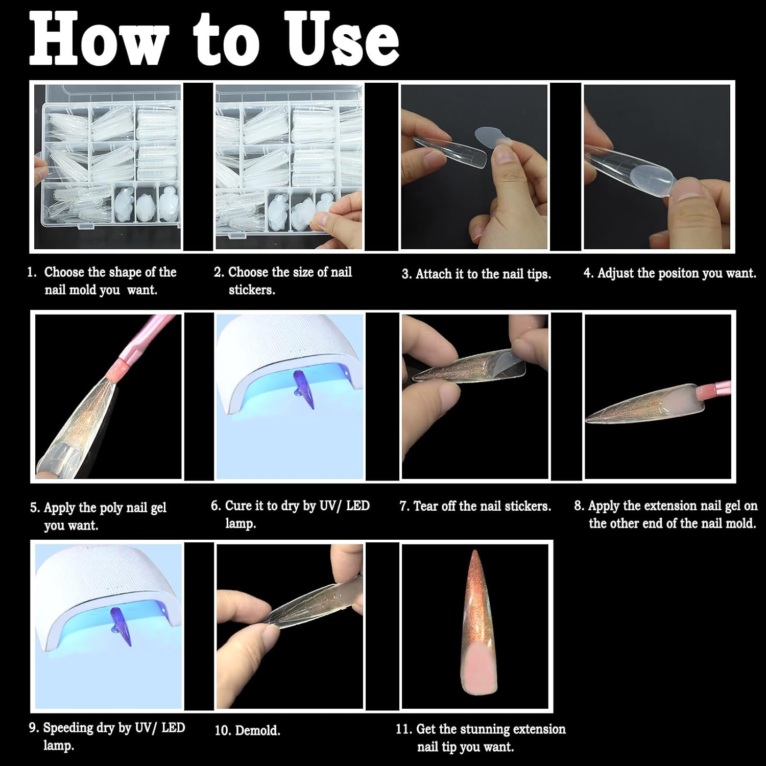 - Wide Application: The Duet System Dual Form stickers are used together with poly nail gel and nail molds, which can quickly and perfectly complete French poly gel nail extension/ acrylic nails extension/ clear nails/almond nail tips/UV gel builder, suitable for nail art DIY lovers and learners, or professional nail technicians do salon work.
