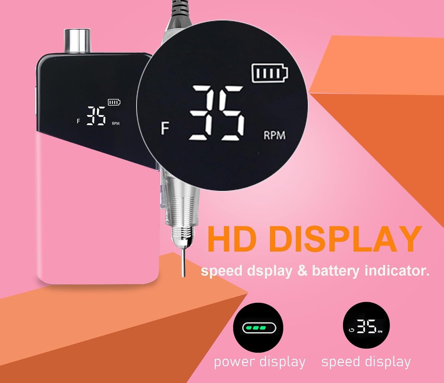 - 🔸 High-Speed Performance: Achieve precision with an adjustable speed of up to 35,000 RPM, controlled effortlessly via the rotating knob. Perfect for acrylic nails, gel polish, dip powder, cuticles, and calluses.