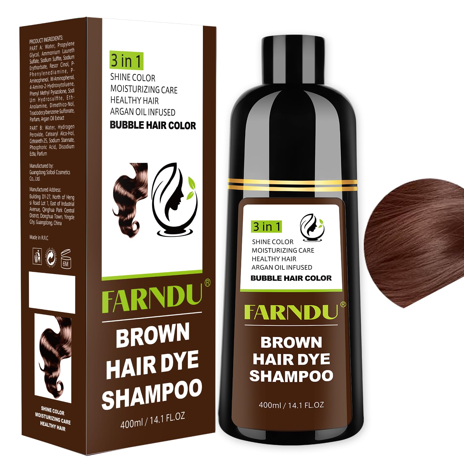 Brown Hair Dye Shampoo for Women Men, Gray Hair Coverage, Natural Herbal Ingredients