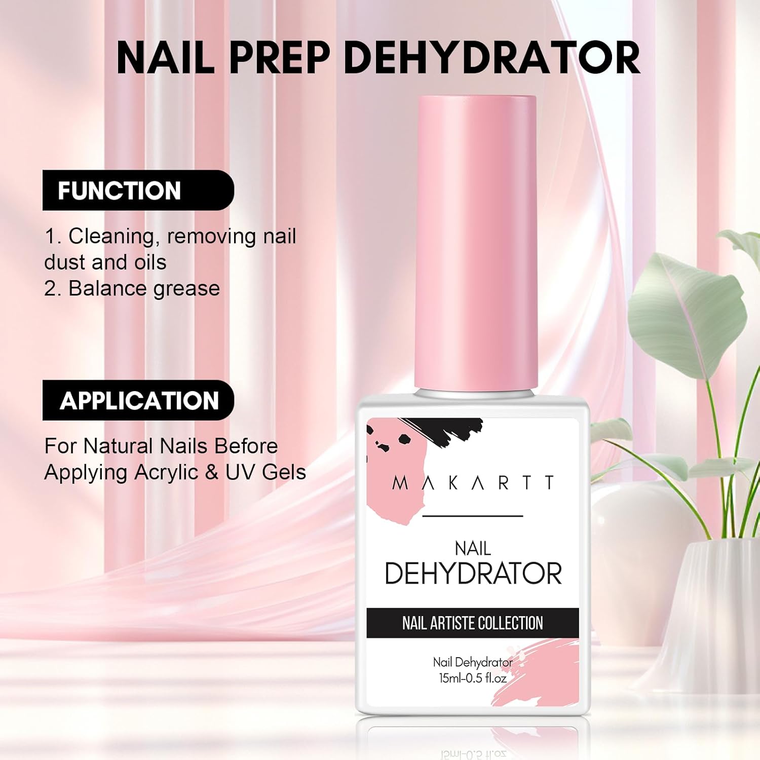 Makartt Nail Dehydrator: 15ML Acid-Free Prep for Acrylic Nails, Gel Polish, and Dipping Powder, 0.5oz Fast-Dry Professional Base for Manicure & Pedicure Use