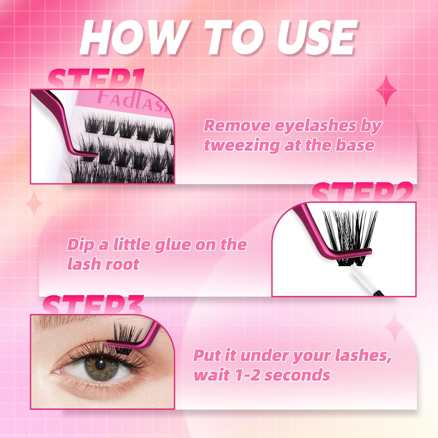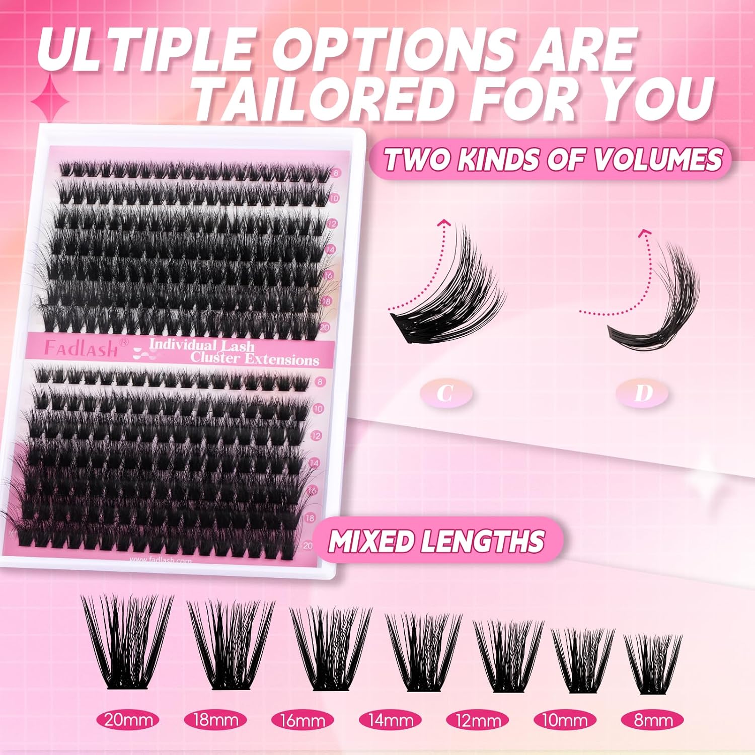 - Money and Time Saving individual lashes: FADLASH lash clusters are easy to apply and pick up. The clusters lashes with different lengths and styles are suitable for various occasions. DIY individual lashes will help you create perfect makeup.