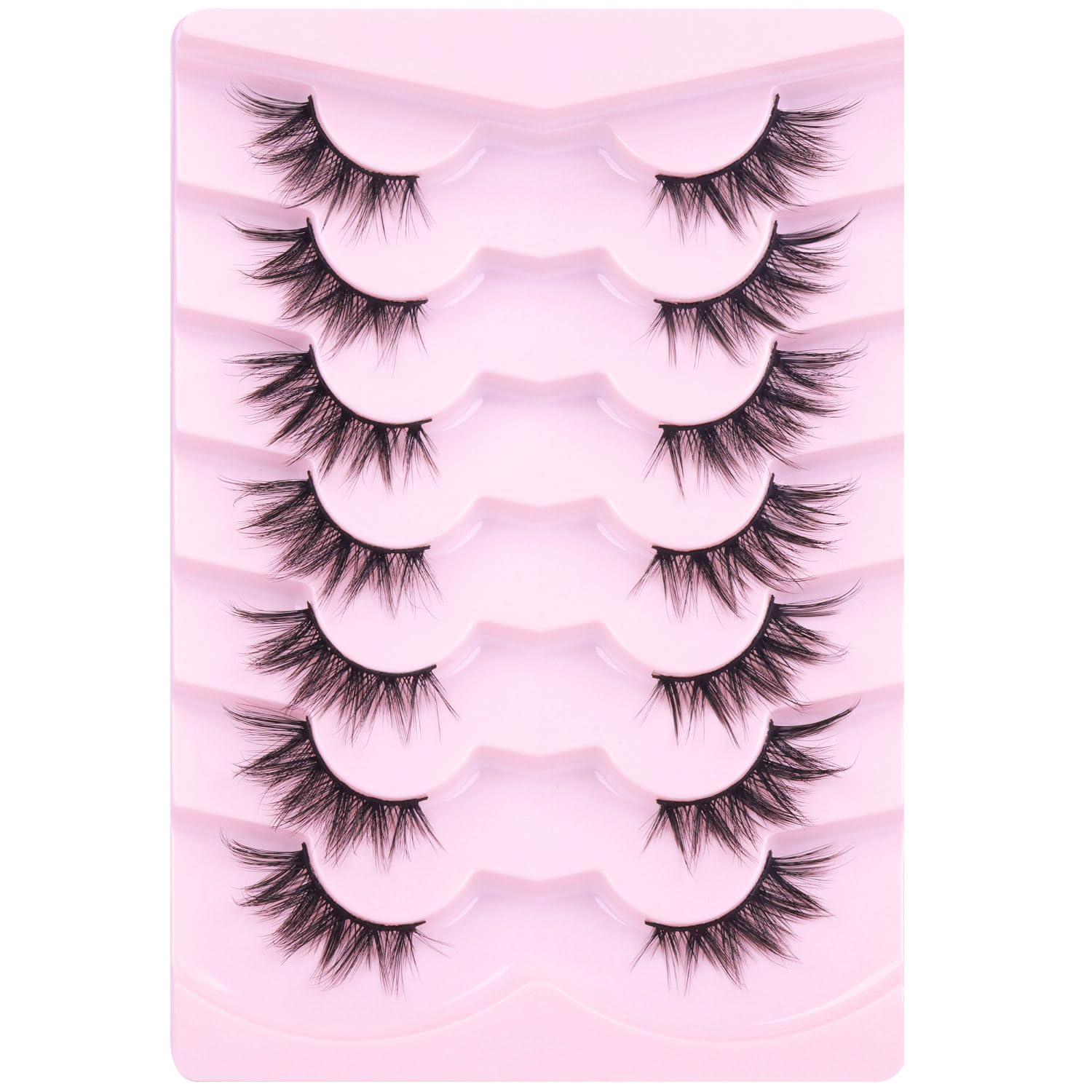 Half Lashes Fox Eye Faux Mink Lashes Wispy Eyelashes Cat Eye 20mm Fake Lashes Spiky Strip Eyelashes Pack 7 Pairs