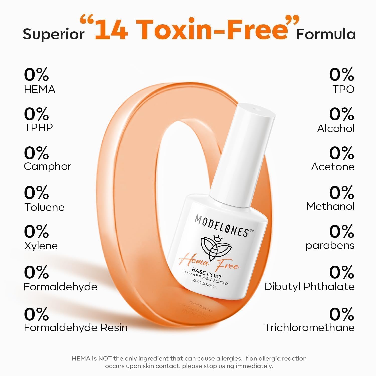 - Mild Base Coat: Modelones upgraded HEMA-free gel base coat formulated to minimize irritation, making it suitable for users with sensitive skin or those prone to allergies. Gentle, odor formula provides flawless pretty nail results and enhances the overall Home DIY/Salon experience. Need to use U V/LED nail lamp curing