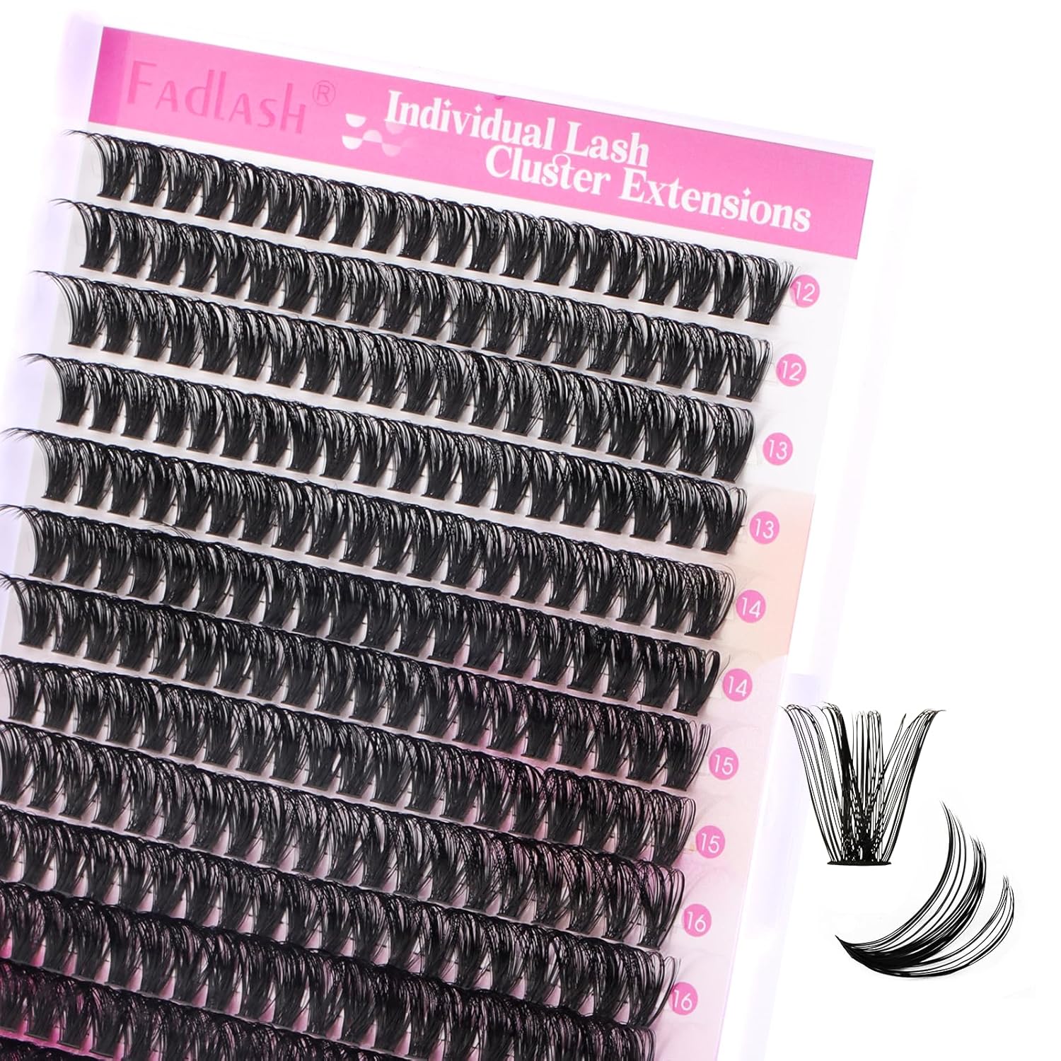 FADLASH Cluster Lashes D Curl Wispy Individual Lashes DIY Eyelash Extension Natural Look Reusable Fluffy Cluster Eyelash Extensions Self Application At Home (60D-0.07D-12-18MIX)