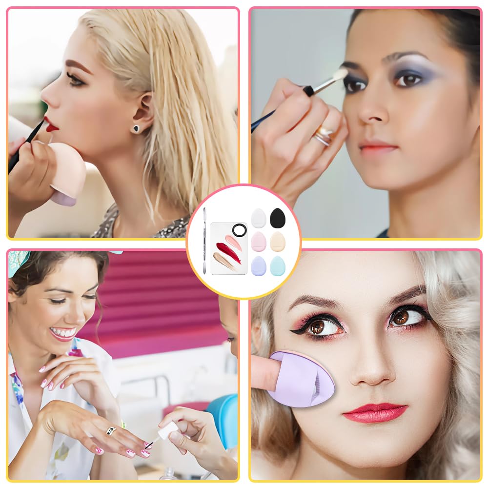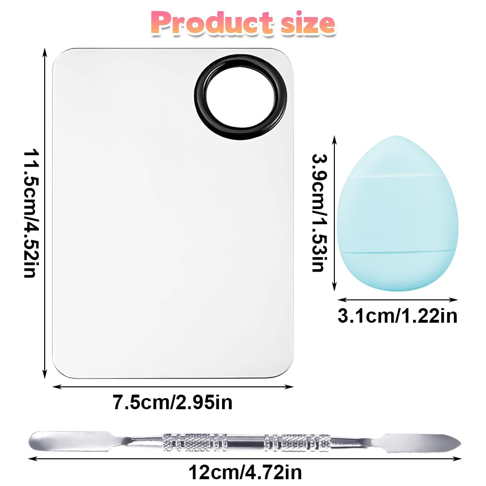 - đăWide ApplicationăYou will receive a set of foundation palette + color mixing stick + six mixed color thumb puff, stainless steel palette can free your hands to achieve easy color mixing; color mixing stick double-ended design, you can dig, cut cream makeup products, clean and hygienic; thumb puff design is small, fingertip-sized, make-up is more convincing, make makeup more convincing, this makeup tools set is suitable for any cosmetic products, free to customize the eyeshadow, lipstick, concealer, foundation, pigment, etc., color and texture as you like